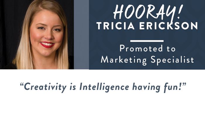 Congratulations Tricia Erickson, Promoted to Regional Marketing Specialist