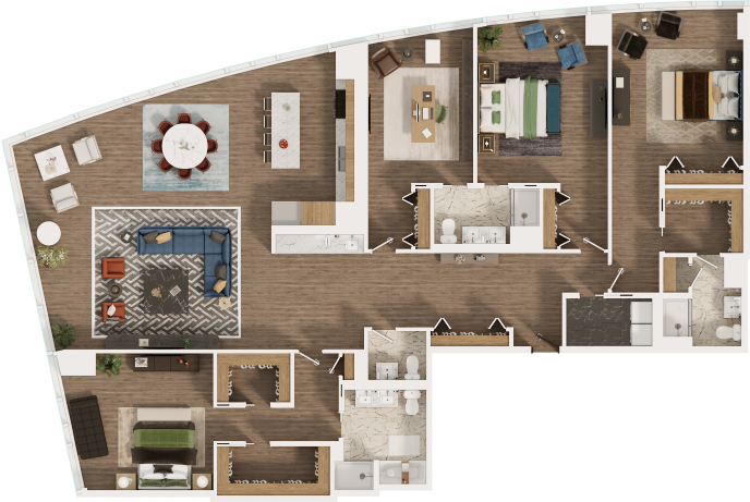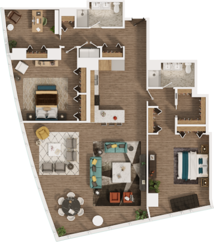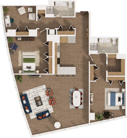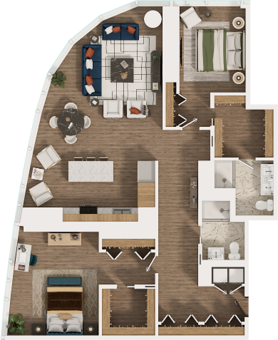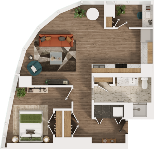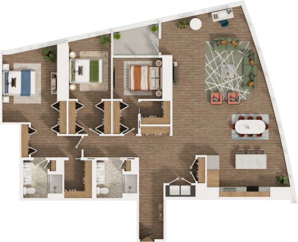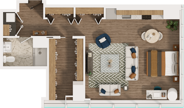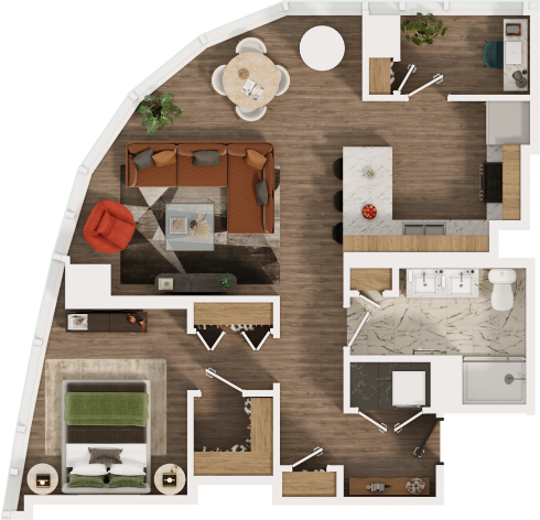 Exceptional studio to 4-bedroom downtown Chicago apartments High above iconic Michigan Avenue, with spectacular uninterrupted views of Grant Park, the city skyline, and the lake, 1000M Apartments invites you to experience a new standard in Chicago apartment living. From thoughtful studios to large multi-bedroom residences, these modern, light-filled spaces connect you to the heart of downtown while you relax and enjoy your sophisticated home high above it all.
