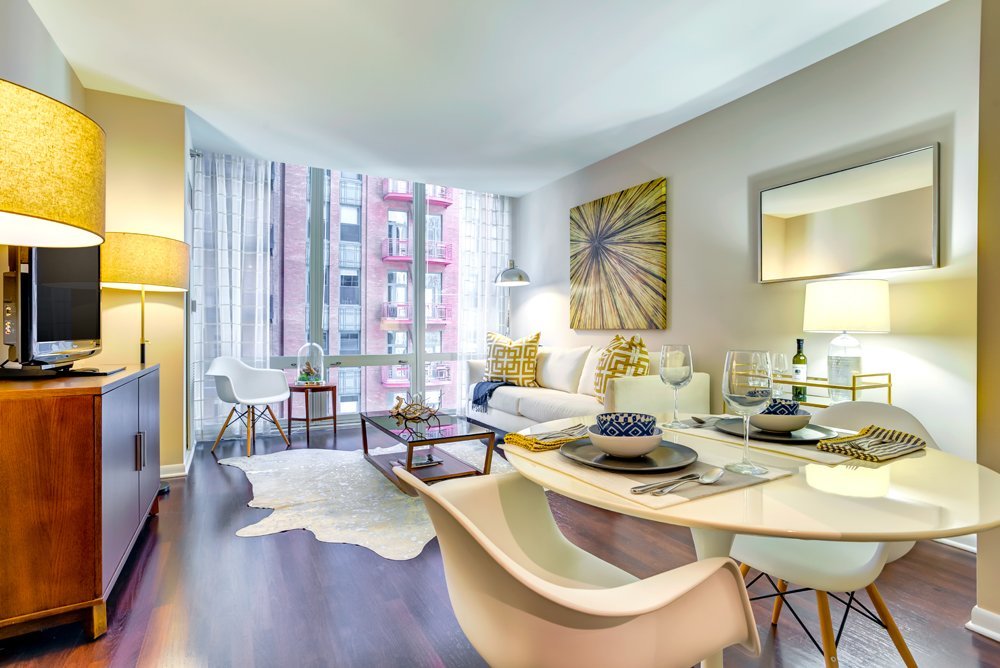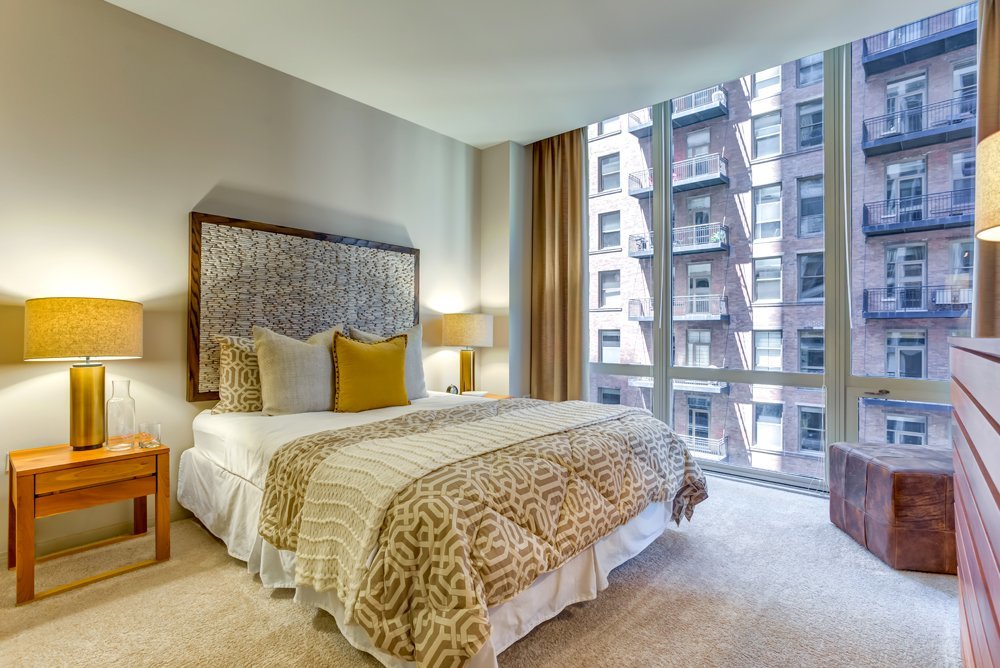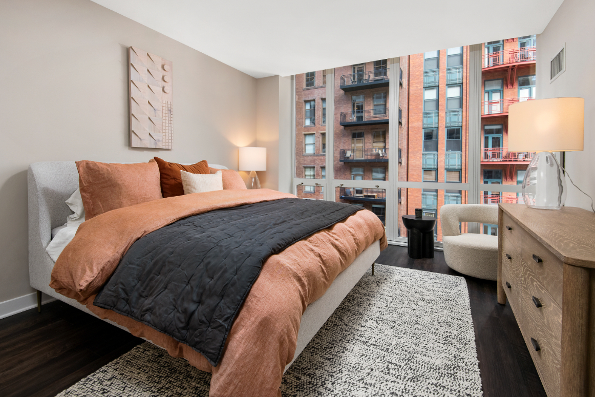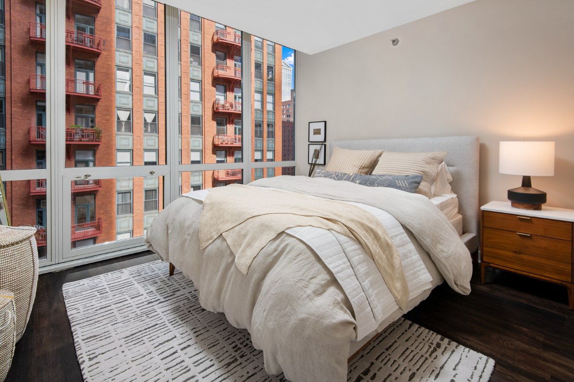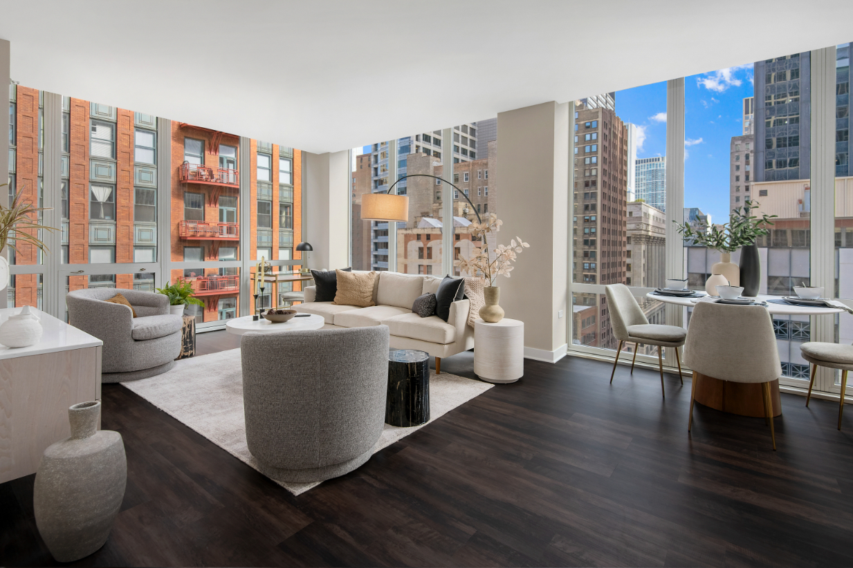 215 West Apartments offer beautifully designed residences with sleek and modern finishes and top-of-the-line appliances. Select from a wide array of plans, including spacious studios, convertibles, one bedroom, one bedroom plus dens, and two and three-bedroom apartments. Every home has floor-to-ceiling windows with magnificent city views, an in-home washer & dryer, granite countertops, individual climate control, and more!