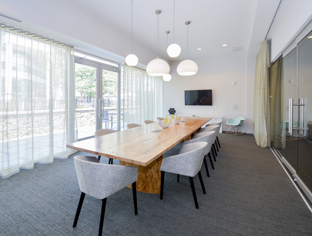 Thanks to an extensive array of on-site amenities, luxury follows you throughout our pet-friendly community. In the mornings, you can stop by the resident coffee bar before getting to business in the contemporary conference room. If you enjoy getting some exercise, swim laps in the sparkling pool or sweat it out in the state-of-the-art fitness center. After your workout, wind down by watching a movie in the media lounge, which comes equipped with complimentary Wi-Fi.