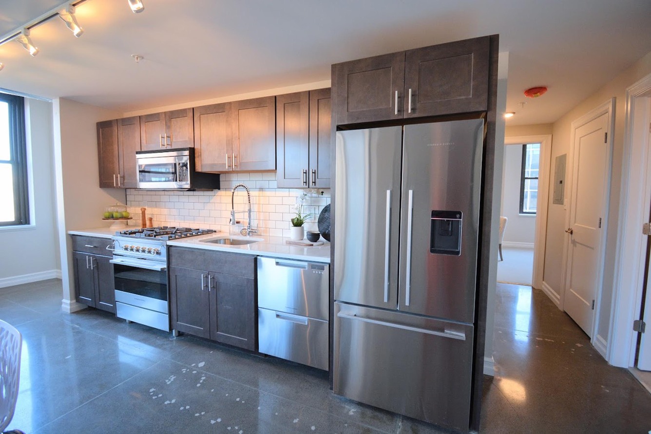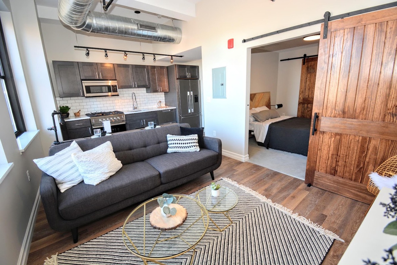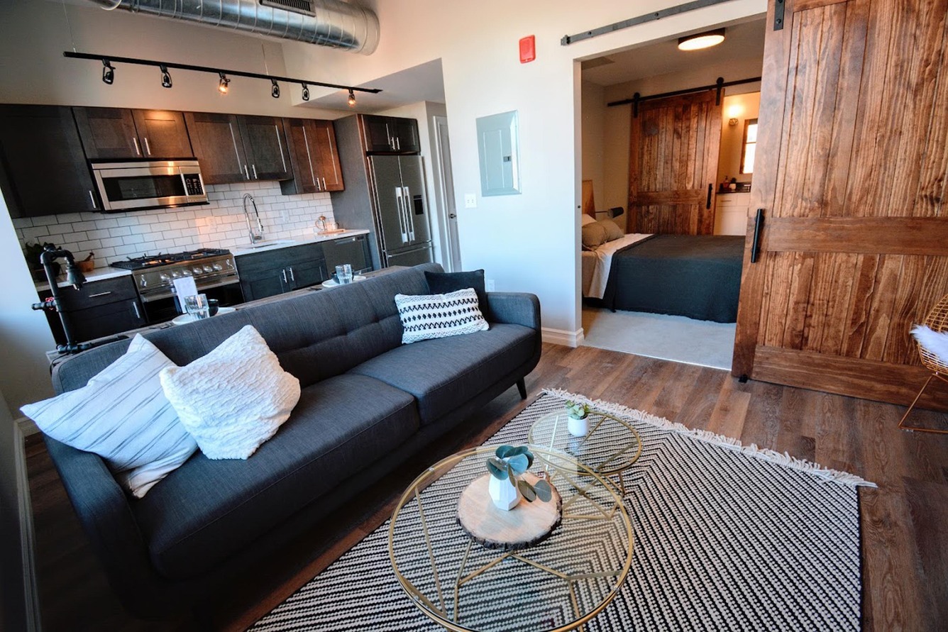 Inside every home, you’ll find open floor plans illuminated with natural light. Stunning finishes, such as hardwood and polished concrete floors and sliding barn doors, add modern character to every room, while high-end appliances, including a full-size washer and dryer, simplify your day-to-day. Just outside your front door, premium community amenities offer ultimate convenience. Work up a sweat in the fitness center before socializing with neighbors in the lounge. Along with a parking garage and free high-speed internet, you’ll appreciate trash and snow removal services and 24-hour emergency maintenance.