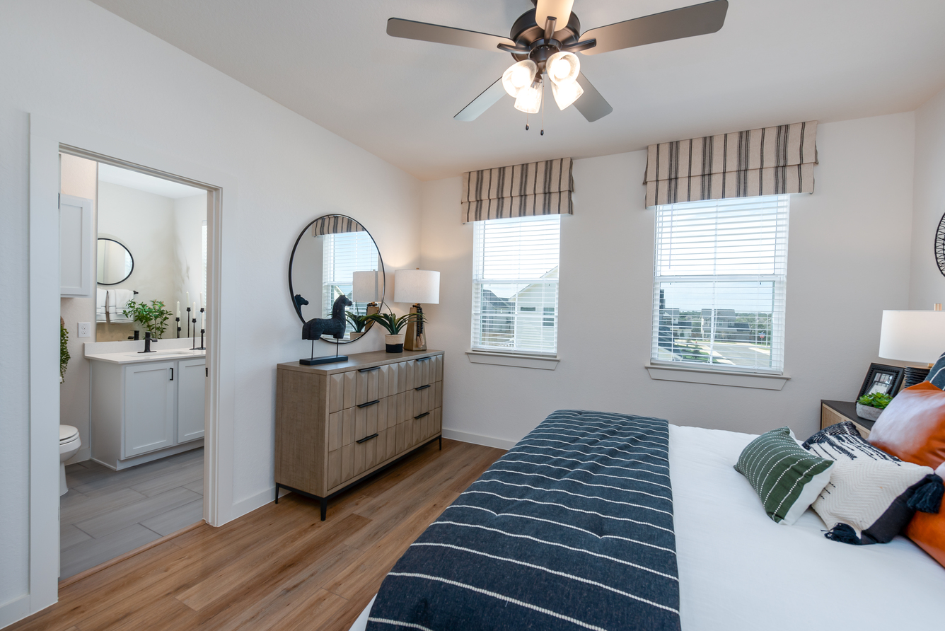 Feel right at home in the inspiring community of Alamar, now offering new two, three, and four bedroom houses for rent in North Central San Antonio. Each floor plan boasts a timeless design with sophisticated wood-style flooring, tall ceilings, and large windows that allow plenty of natural light so you can enjoy prime golden hour in your stylish living room. In your kitchen, enjoy home cooking surrounded by stainless-steel appliances, quartz countertops, and ceramic tile backsplashes. When you’re ready to unwind, take in Hill Country views as you sip a refreshing drink on your private patio or backyard, or retreat to your comfortable primary bedroom with a walk-in closet. Each home also comes with an attached garage to protect your vehicle from the elements or provide extra storage space.