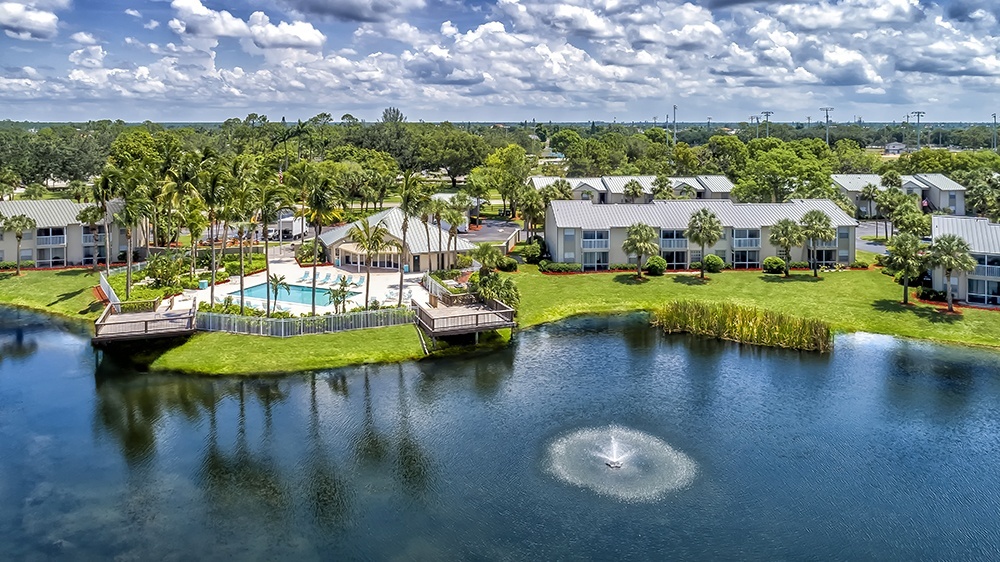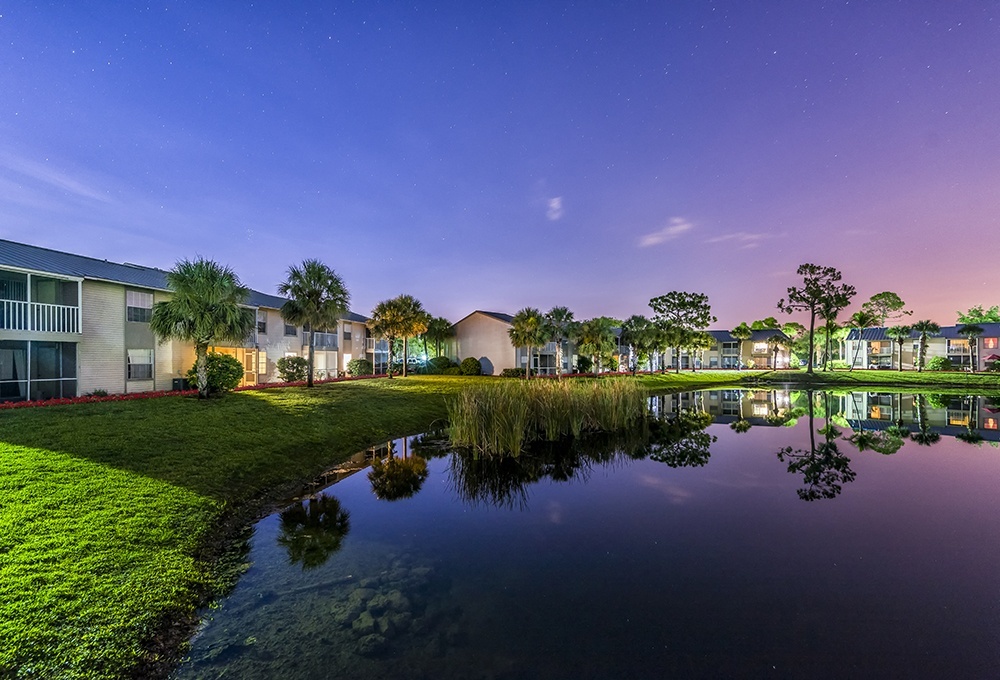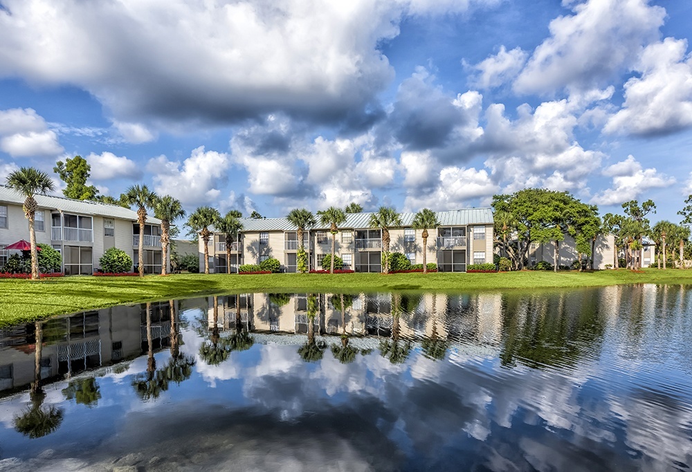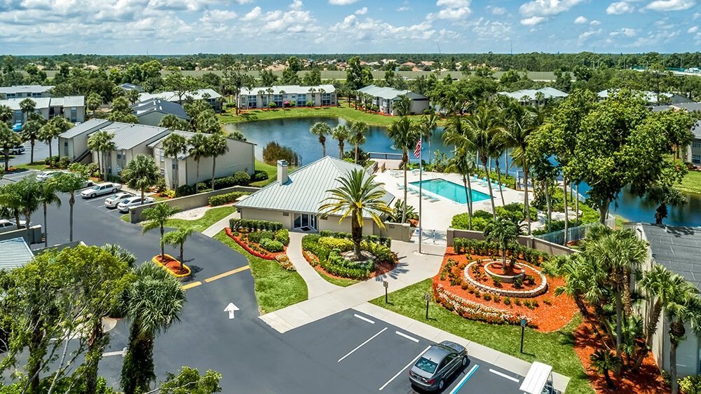 Discover Alvista Golden Gate! We are a community of pet-friendly apartments in Naples, Florida and we invite you to explore our spacious one- and two-bedroom floor plans designed with you in mind. Stunning interiors feature wood-style plank floors, charming lake views, washers and dryers, private screened-in lanais, and central air conditioning.