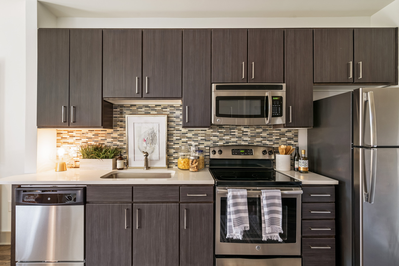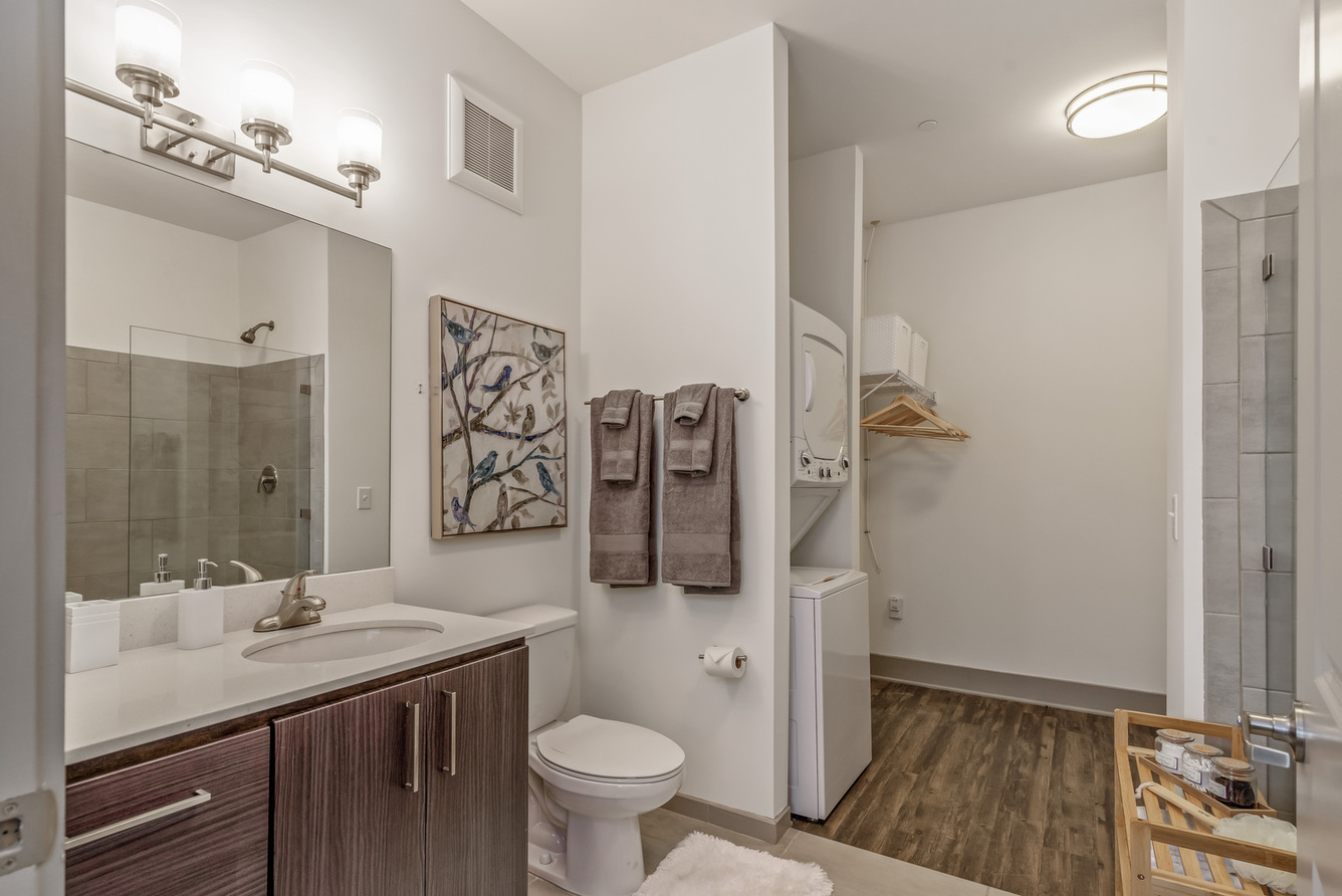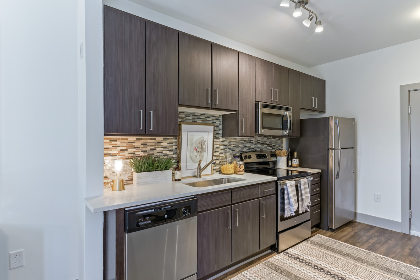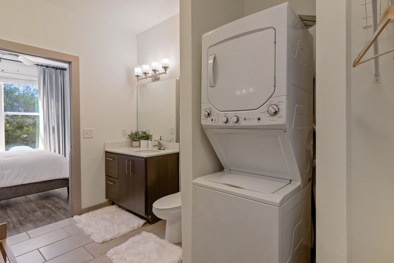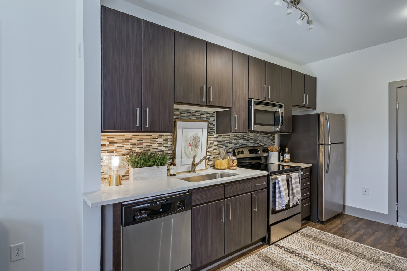 Step into the comfort of spacious living areas and a kitchen that welcomes you with stylish finishes such as a glass tile backsplash, a range of stainless steel appliances, and a choice of granite or quartz extended countertops. Enjoy quick and easy meal prep Sundays with large chef’s islands as well. The relaxing ambiance of your living room extends to the beautiful private patio or balcony. Other highlights include oversized closets in the bedrooms, washers and dryers in the utility rooms, and garden tubs in the bedrooms of select homes.