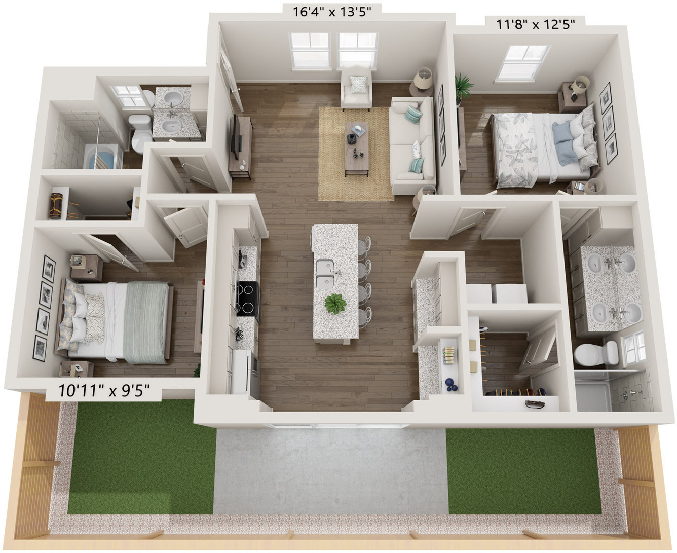 • One, Two, Three and Four Bedroom Patio or Townhomes