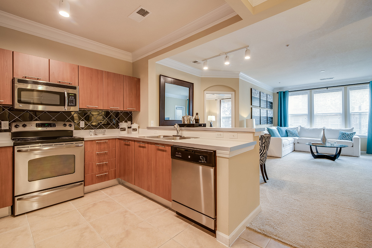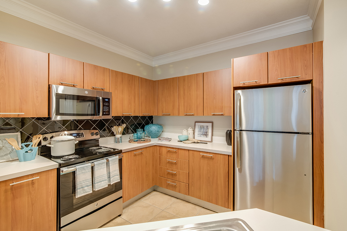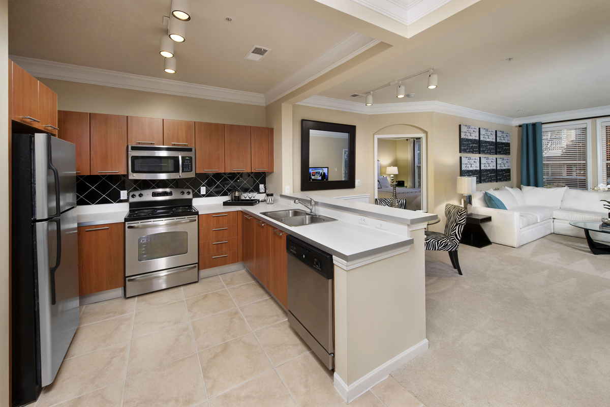 Step inside your home to discover elegant touches at each corner, including crown molding and vaulted ceilings. The gourmet kitchen, complete with stainless steel appliances, cherry cabinets, and European-inspired countertops, is both functional and stylish. You’ll appreciate the convenience of an in-home washer and dryer set as well as spacious walk-in closets and an expansive patio or balcony. Furnished homes are also available.