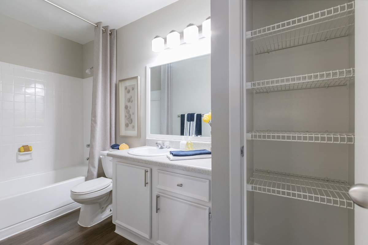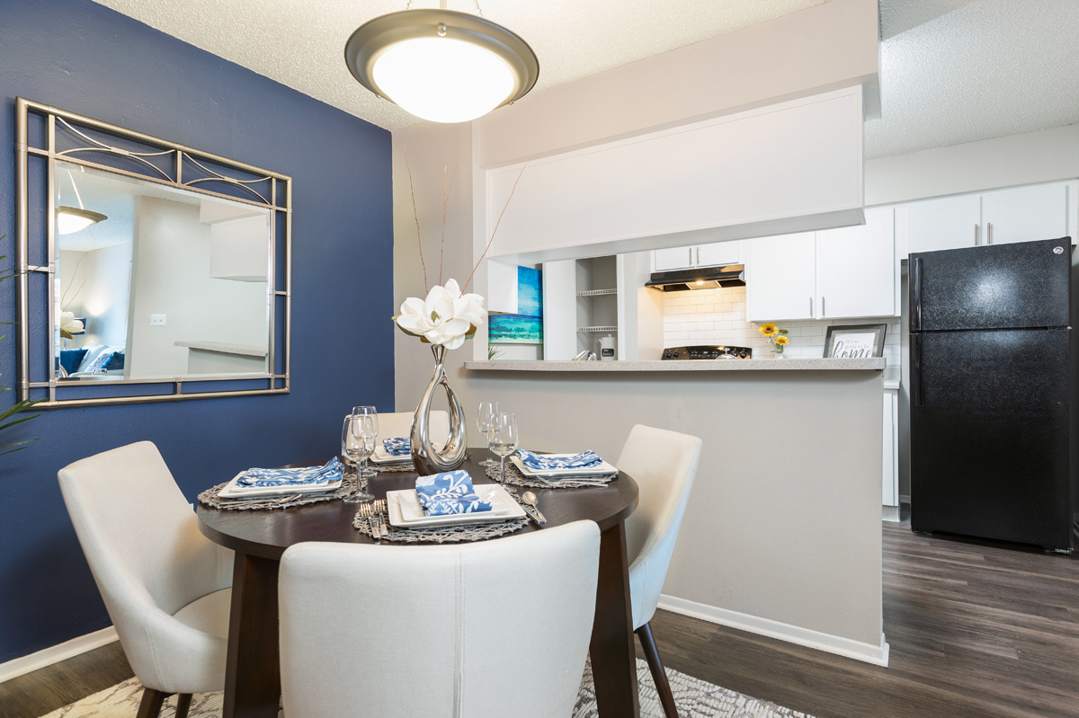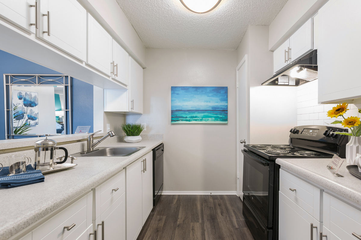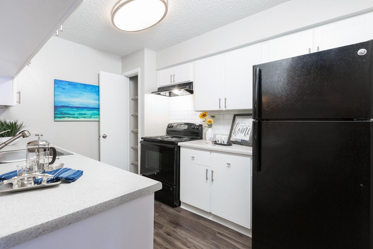 Inside our spacious one and two bedroom floor plans, you’ll discover an impressive range of recent upgrades and modern finishes, including newly refinished countertops and updated lighting fixtures. Sleek galley kitchens, which boast brand-new black appliances, designer cabinets, and brushed nickel pulls, provide an excellent setting for cooking gourmet meals. Each home includes a screened-in patio with additional storage space while select apartments are outfitted with wood-style floors and in-home laundry appliances.