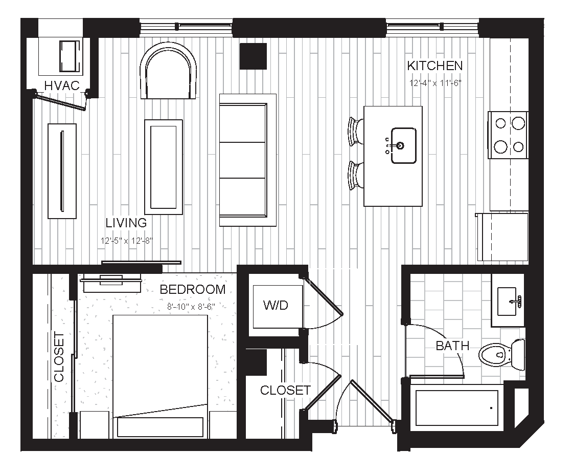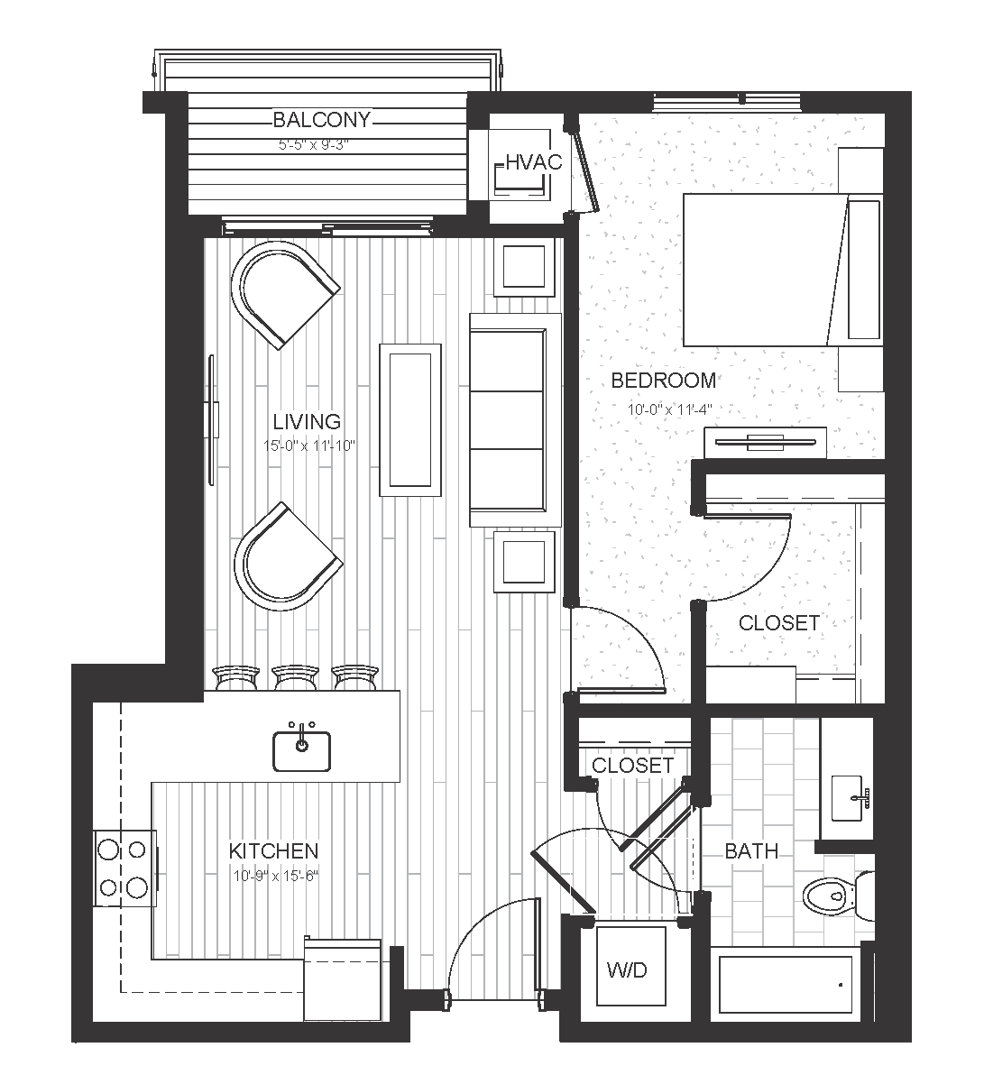 Outside, our community amenities enhance an already top-of-the-line living experience. Cyclists are sure to make use of our bike racks while everyone is invited to sweat it out in our fitness center. In your free time, lounge on an inviting sundeck with stunning skyline views or grill something delicious at the outdoor barbecue and picnic area.
