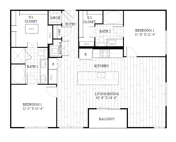 Floorplans are artist's rendering. All dimensions are approximate. Actual products and specifications may vary in dimension or detail. Not all features are available in every rental home. Prices and availability are subject to change. SQFT listed is an approximate value for each unit. Please see a representative for details.