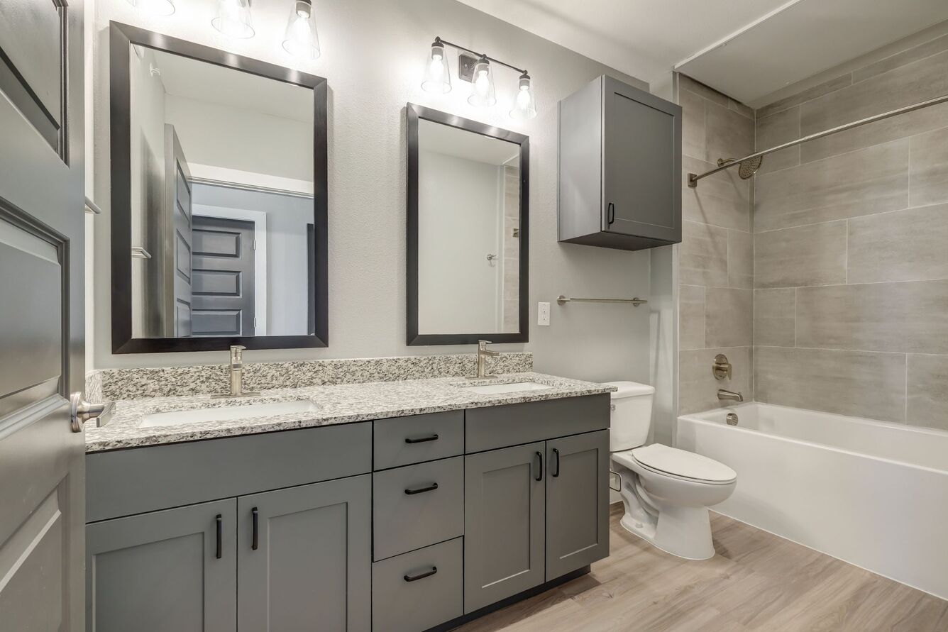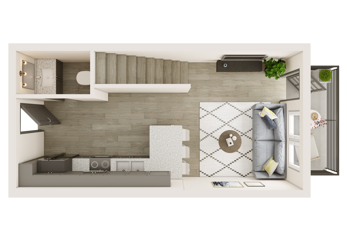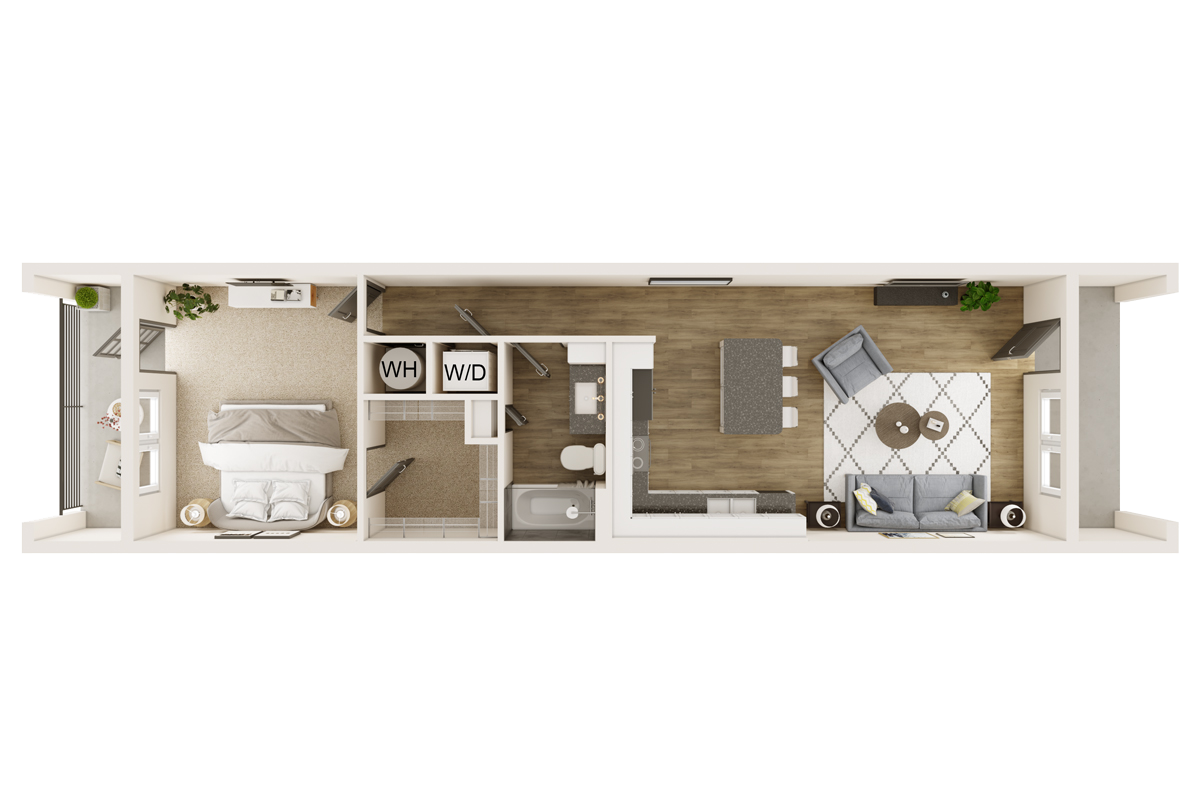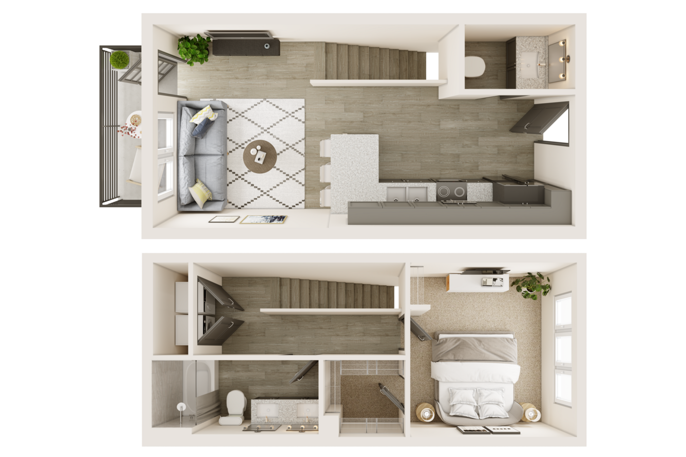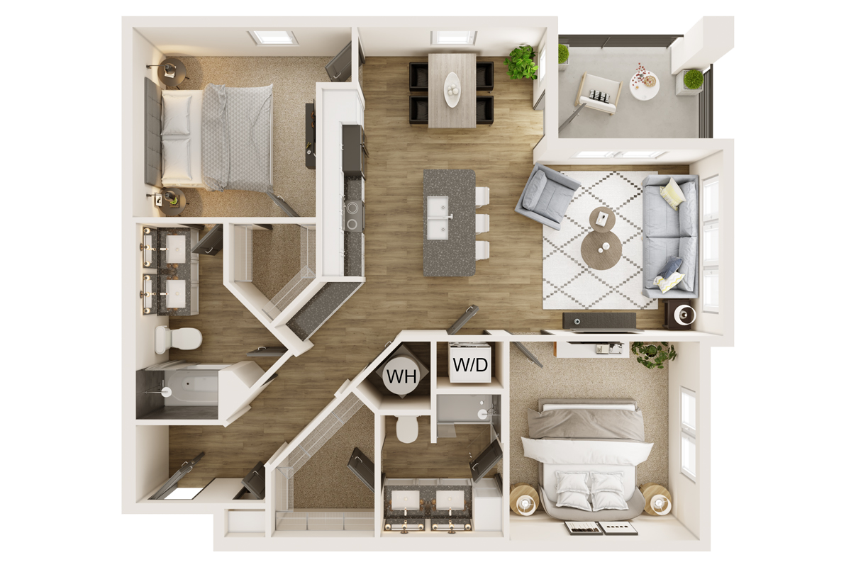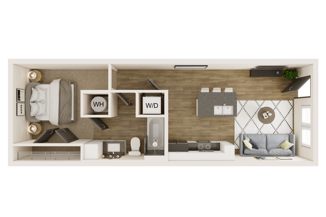 No matter which layout you choose, you can look forward to delightful cooking experiences in your designer kitchen with stainless-steel appliances, quartz countertops, and white or warm gray finished cabinets. Spacious walk-in closets make staying organized a snap, while smart-home features, USB charging outlets, and in-home laundry appliances allow you to enjoy a life of ease.