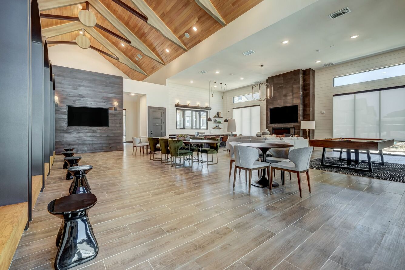 Whether you’re getting your heart racing in the fully equipped fitness center or relieving some stress in the relaxing sauna, Camber Ranch’s first-class amenity package not only fits your needs but also complements your lifestyle. Here, you can escape the Texas heat in a resort-style pool, meet neighbors for game night in a high-tech E-sports area, and have fun with your furry friends in an off-leash dog park.