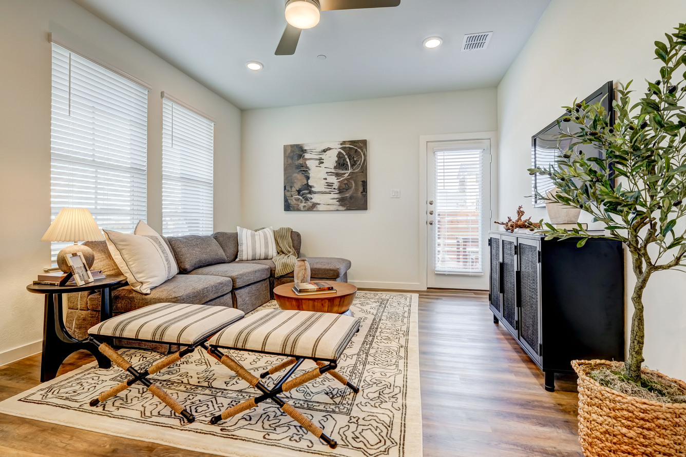 Inside, our spacious two, three, and four-bedroom floor plans offer no shortage of stylish finishes, from rich wood-inspired floors to designer lighting fixtures. Along with ample storage space, the deluxe kitchen delights with stainless steel appliances, stone countertops, and a subway tile backsplash. The patio and the private backyard provide a breath of fresh air, while in-home laundry appliances, large closets, and smart-home locks make your daily routine more manageable.