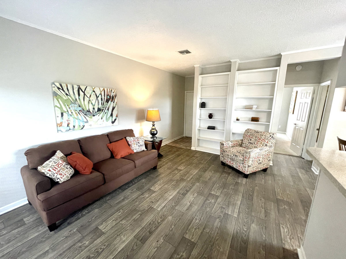 Inside your apartment, options such as wood-style flooring and built-in bookshelves deliver a timeless look while a stylish black appliance package in the kitchen provides some contemporary appeal. Ample cabinet and counter space, as well as a convenient breakfast bar, add even more functionality to your cooking space. To enhance your overall comfort, roomy closets, carpeted bedrooms, and attached patios and balconies help make you feel right at home. You can take in the picturesque community views from home or explore the amenities. Relax under a poolside cabana with some fresh barbecue from the grilling area. Reach your fitness goals with the professional equipment in the fitness center or ensure your dog gets some exercise courtesy of the on-site pet park. A clubhouse with laundry facilities and a computer center is also available.