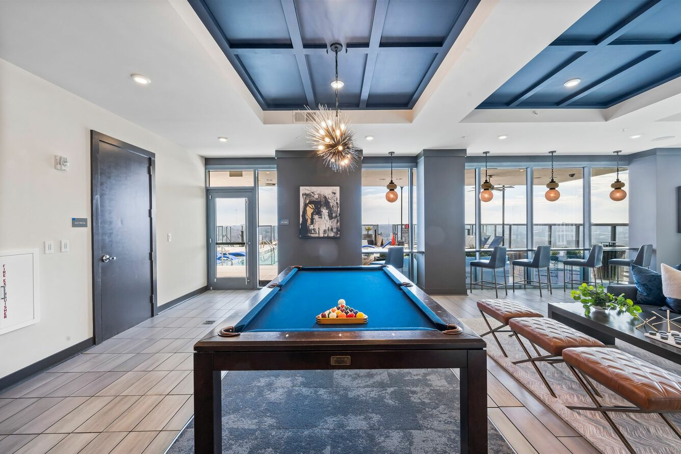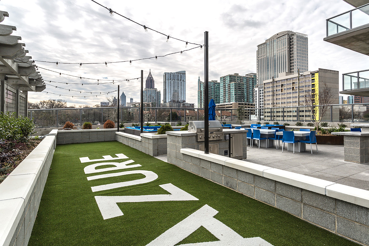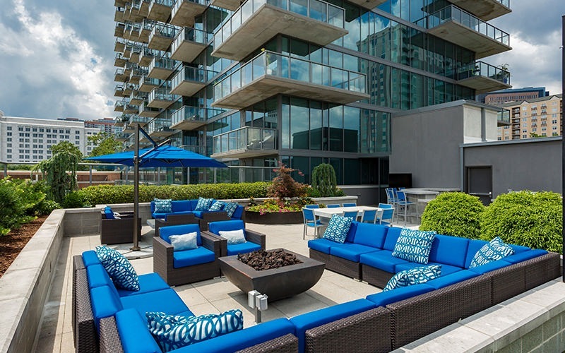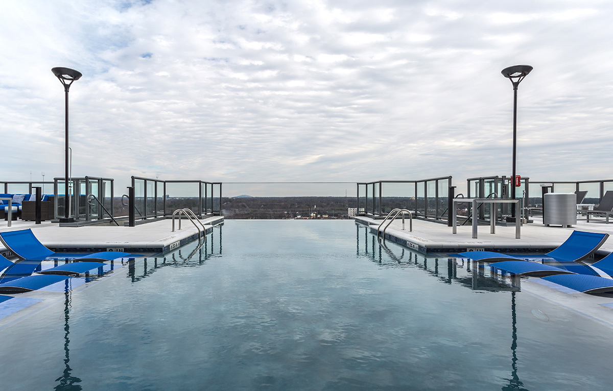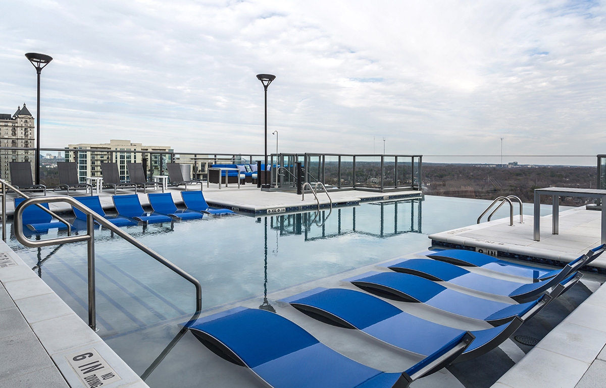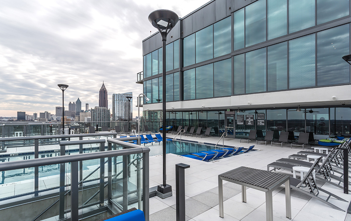 Azure on the Park is the ultimate place to call home! Enjoy exceeding your fitness goals in our state-of-the-art fitness center with yoga and spin studios. Our rooftop saline pool has a clear edge and gives residents a breathtaking view of Piedmont Park. Residents can enjoy the Sky Club featuring entertainment dining, billiards, and a Starbucks coffee bar. Our access-controlled pet-friendly community has a private dog spa and dog walk, along with electric vehicle charging stations and bike storage for your transportation needs.