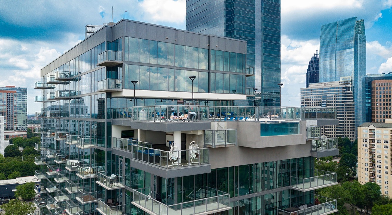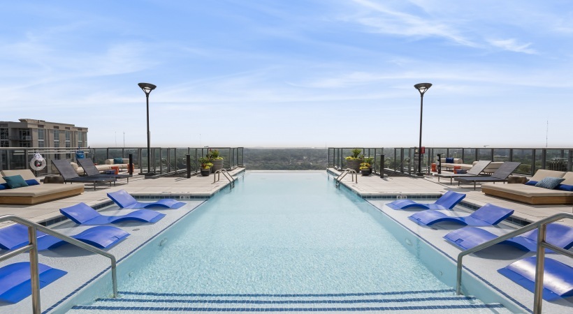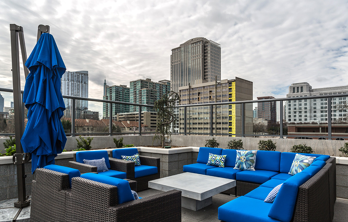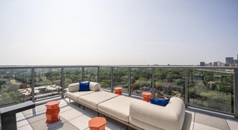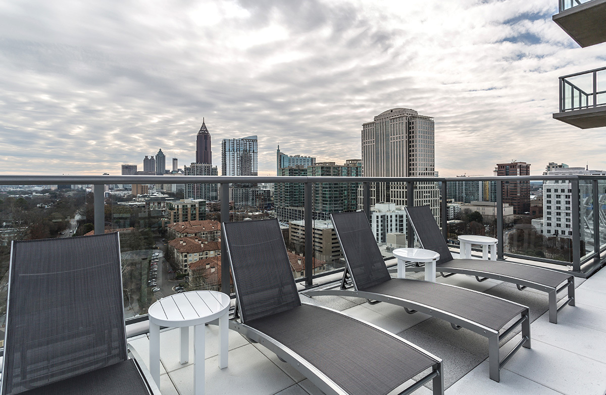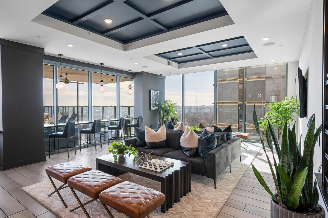 Azure on the Park is the ultimate place to call home! Enjoy exceeding your fitness goals in our state-of-the-art fitness center with yoga and spin studios. Our rooftop saline pool has a clear edge and gives residents a breathtaking view of Piedmont Park. Residents can enjoy the Sky Club featuring entertainment dining, billiards, and a Starbucks coffee bar. Our access-controlled pet-friendly community has a private dog spa and dog walk, along with electric vehicle charging stations and bike storage for your transportation needs.