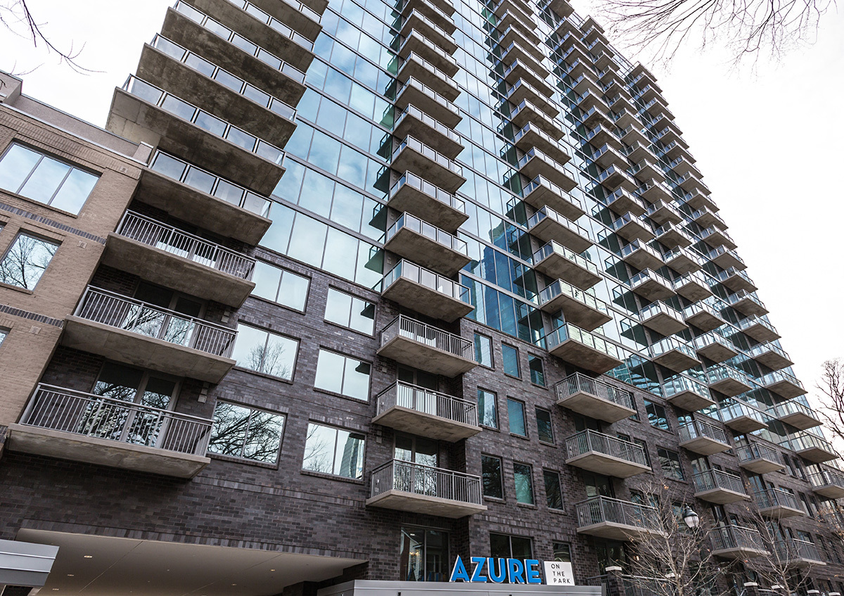 Welcome to Azure on the Park! Our upscale Midtown apartments will have you living the lifestyle you deserve from the moment you step through the door. Our modern community features 25 floors of various studio, one-, and two-bedroom layouts along with breathtaking penthouses. Each of our apartment homes features picture-perfect views of the city from their floor-to-ceiling windows and plank flooring throughout the entire home. Designer kitchens come standard with quartz countertops featuring under mount sinks, and stainless-steel appliances. Enjoy being able to control the temperature of your home wherever you are with a Nest® learning thermostat. Additionally, full-sized washers and dryers allow our residents to take care of laundry in the comfort of the own home.