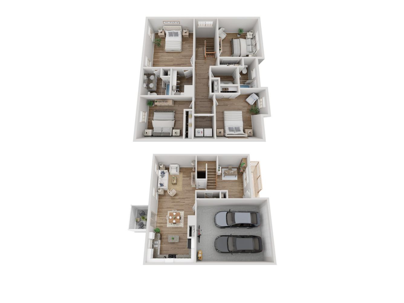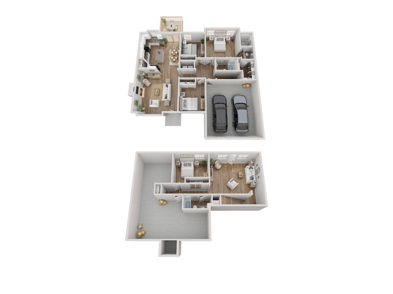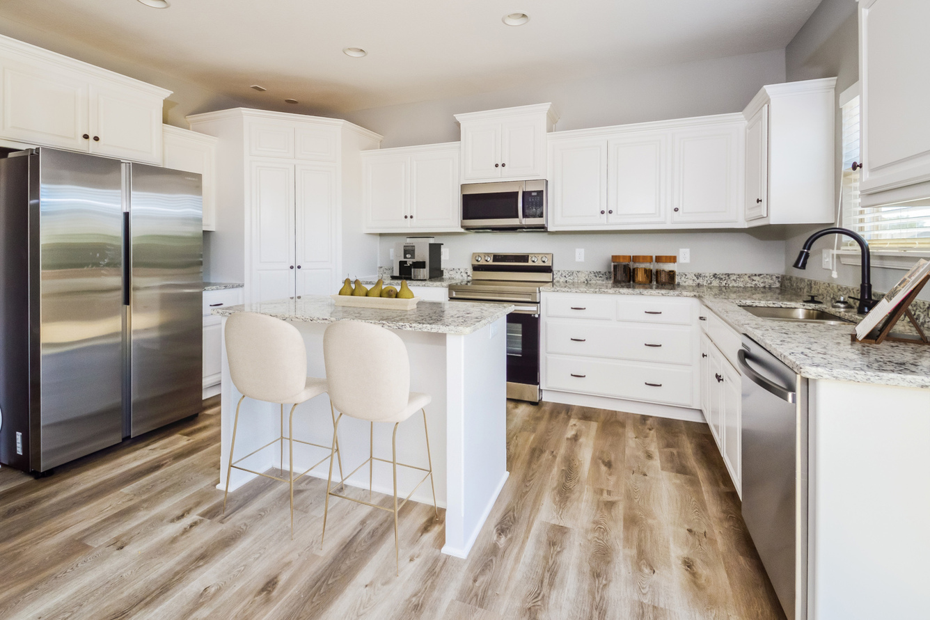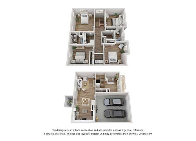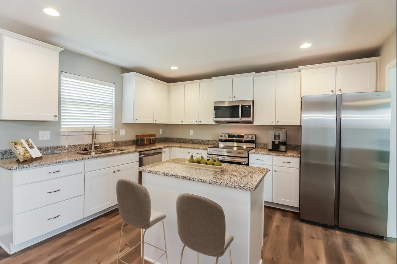 Featuring everything from attached garages to in-home washer and dryer connections, our two-story layouts are thoughtfully designed with your modern lifestyle in mind. Located on the first floor, a luxe kitchen with sleek stainless-steel appliances and stunning granite countertops is sure to streamline your cooking routine. When you need a break from your busy day, head outside for a breath of fresh air on your private patio or balcony.