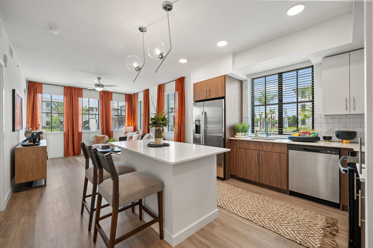 Welcome to Edera Palm Spring, the premier choice for apartments for rent in West Palm Beach. Perfectly positioned just 15 minutes from the heart of downtown, our luxury apartment community combines the laid-back charm of Palm Springs, FL, with the convenience of city living. Choose from pet-friendly one, two, and three-bedroom homes featuring modern elegance, spacious layouts, and three-story garden-style buildings surrounding a tranquil lake.