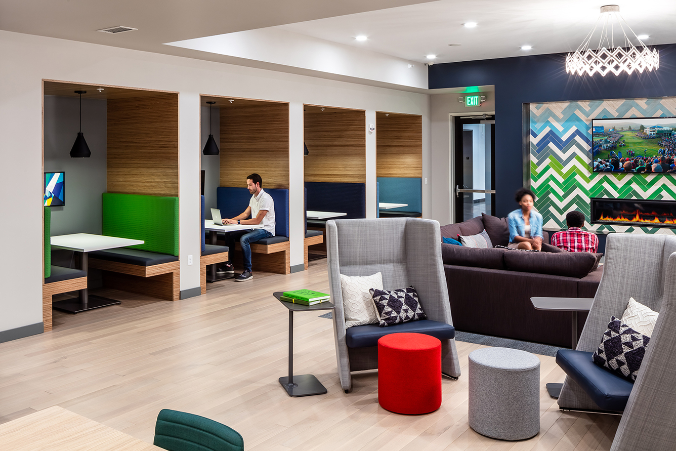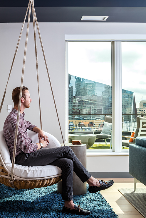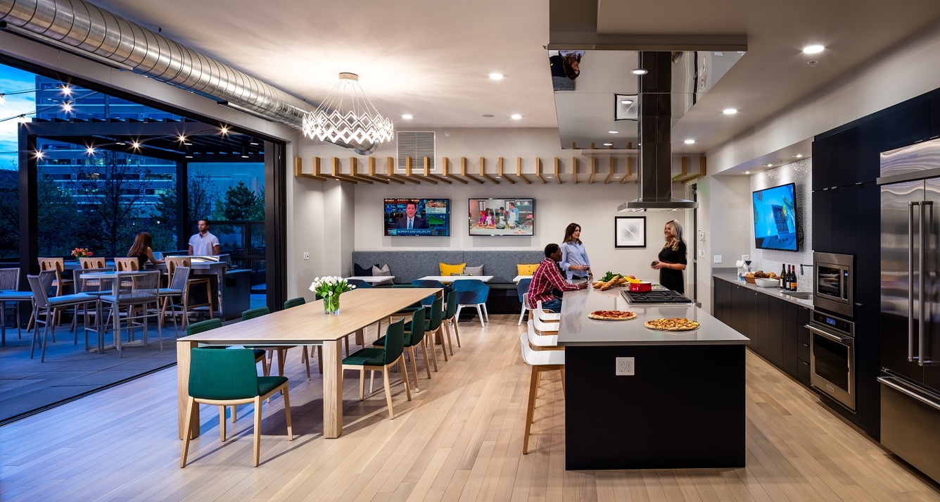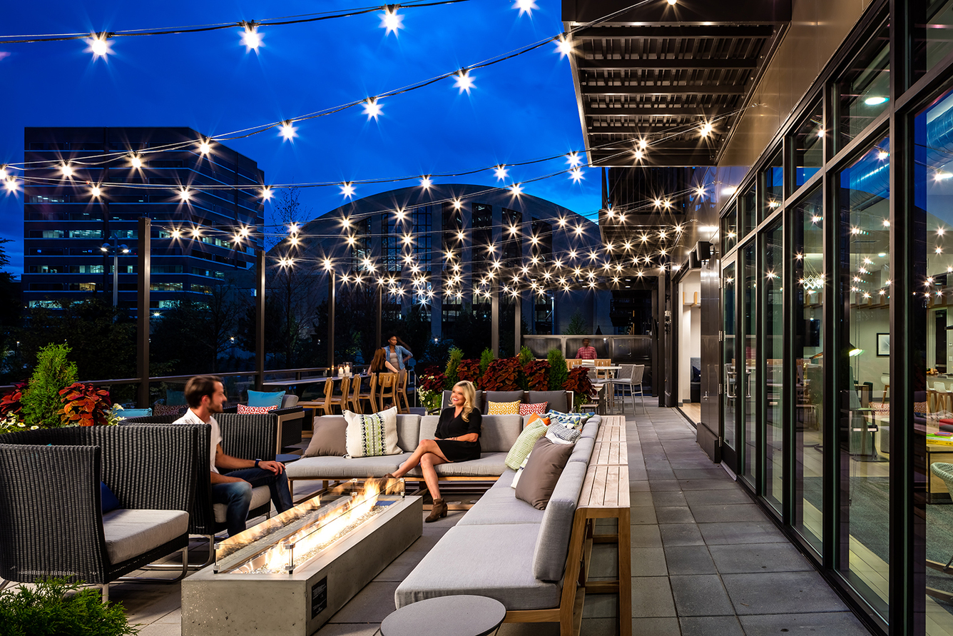 Our one-of-a-kind amenity package begins with concierge services in the hotel-style lobby. Get energized in the 24/7 coffee lounge and meet friends for a group class in the cutting-edge fitness center. Work-from-home spaces allow you to take care of business, while shared spaces like the sky lounge, club terrace, and outdoor fireplace encourage socialization. A four-acre park, a dog wash station, and an off-leash dog run make our community a pet owner’s dream.