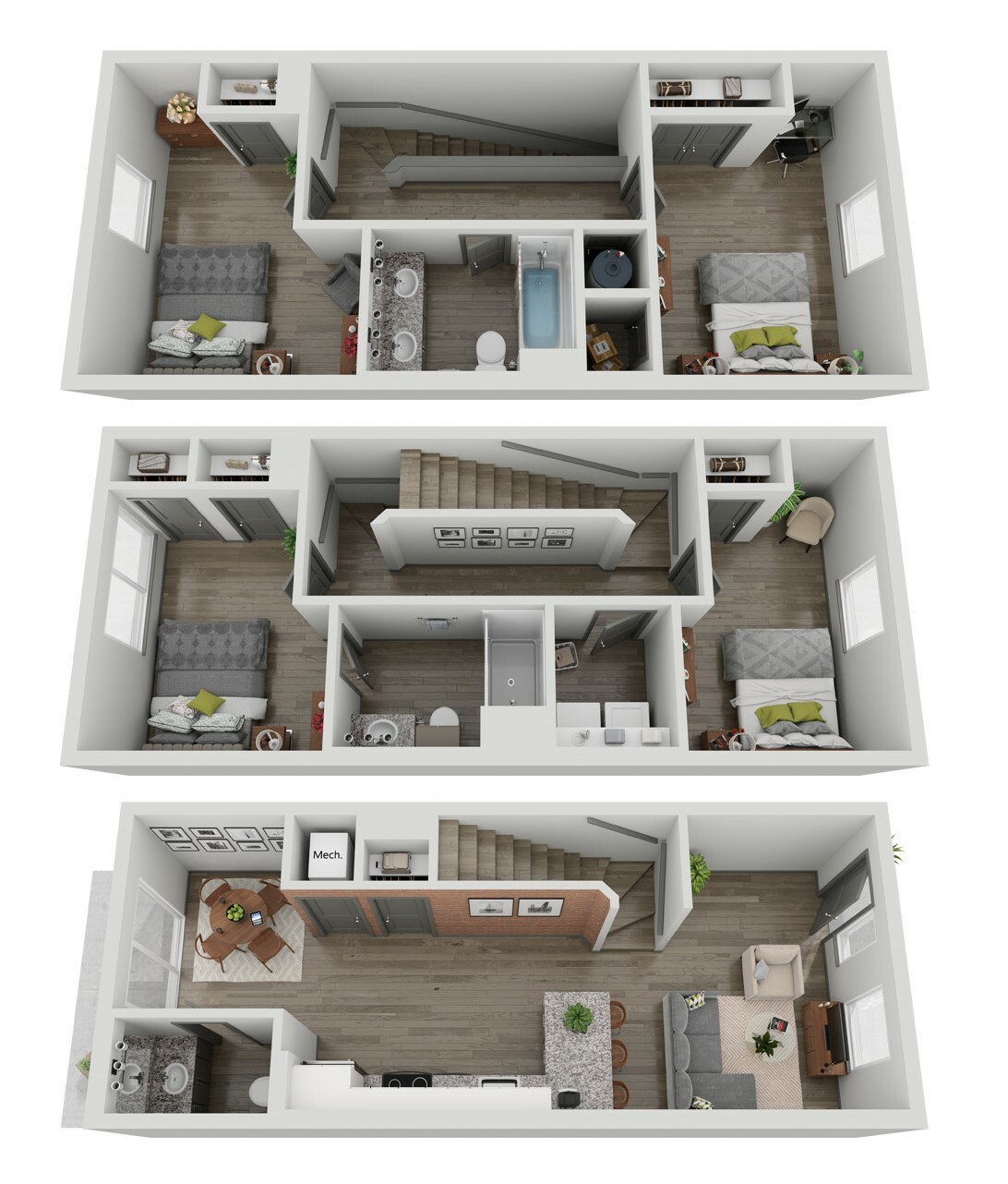 Evolve Townhomes were designed to grow with you at whatever stage of life you’re in. Our efficiently designed townhomes help ground our residents in a community-centered environment while still offering personal privacy. Evolve helps our residents and neighbors on their journey of growth, progress and evolution, offering 2, 3, and 4 bedroom townhomes.