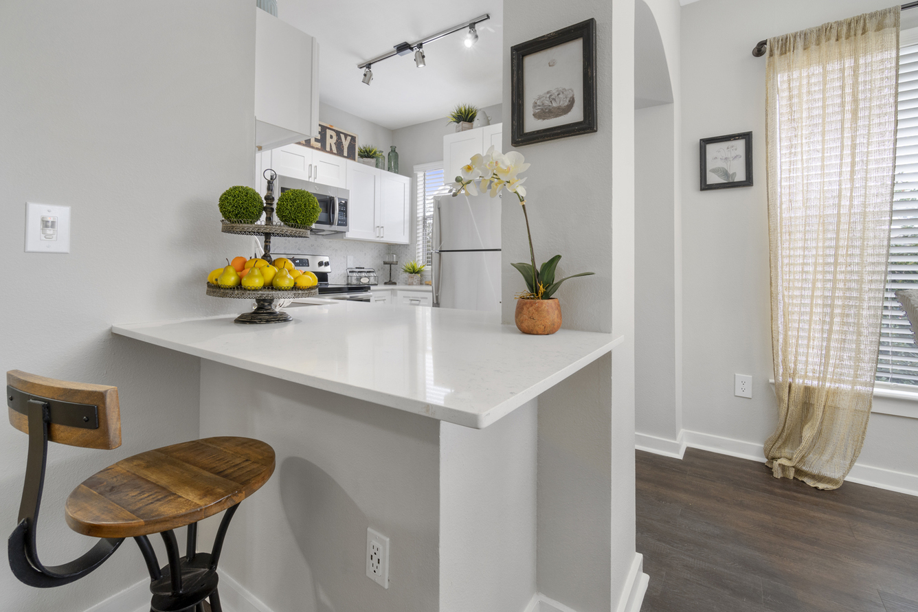 Located in The Colony, TX, Flatiron District at Willow Branch is your ticket to a comfortable and relaxed lifestyle. Discover newly renovated one-, two-, and three-bedroom apartments and townhomes filled with all of the finishes and amenities you desire, from upscale wood-style flooring to luxurious soaking tubs. Find a mix of other exciting features in your expansive home, including a gourmet kitchen with a white marble or grey quartz island, custom soft-close cabinetry, and a washer and dryer. No matter where you look, impressive details await.