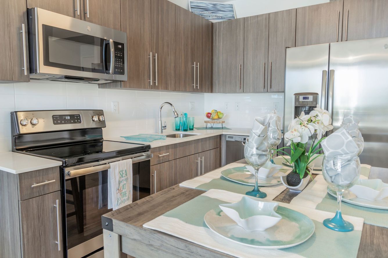 Around the community, we’re thrilled to provide residents with a state-of-the-art fitness center, as well as a resident clubhouse with lounge and coffee bar. The fitness center is one to rival a modern gym. In addition to standard cardio machines and strength training equipment, we also have a designated yoga studio/meditation zone. Outside, our resort-style swimming pool has an expansive sunbathing deck that serves as an excellent spot to enjoy the Florida sunshine. Similarly, if you’re looking to entertain, gather some friends for a barbecue at the poolside pavilions that feature gas grilling stations.