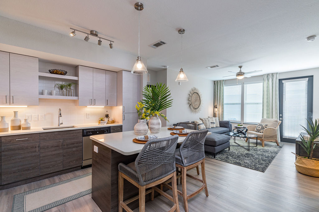 The Harbour at Westshore is an upscale apartment community comprised of studio, one-, and two-bedroom floor plans. Our studio apartments feature a wall separating the bedroom from the living room allowing you to still enjoy the privacy of your own room. Within our two-bedroom apartments, you will find that each bedroom is located on opposite sides of the living room and have their own bathrooms. Each of our apartment homes features numerous amenities including a private patio, Nest thermostats, smartphone keyless entry, designer kitchens, hardwood-style plank flooring, and full-size washer and dryer. Our gorgeous pet-friendly community is home to a 1/3-acre private Bark Park featuring ample trees, agility equipment, and a small trail. Our athletic club is open 24/7 and has both cardio and strength training equipment along with a water rower and spin bikes. Our sparkling pool is heated and features a sundeck and cabanas. Enjoy relaxing within our social room by playing a game of foosball, shuffleboard, or billiards. Not only is reserved garage parking available, but we also have bike storage along with a bike repair shop.