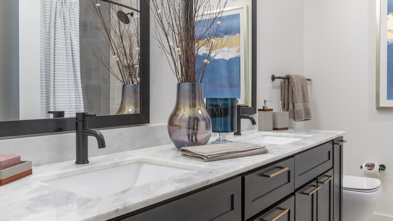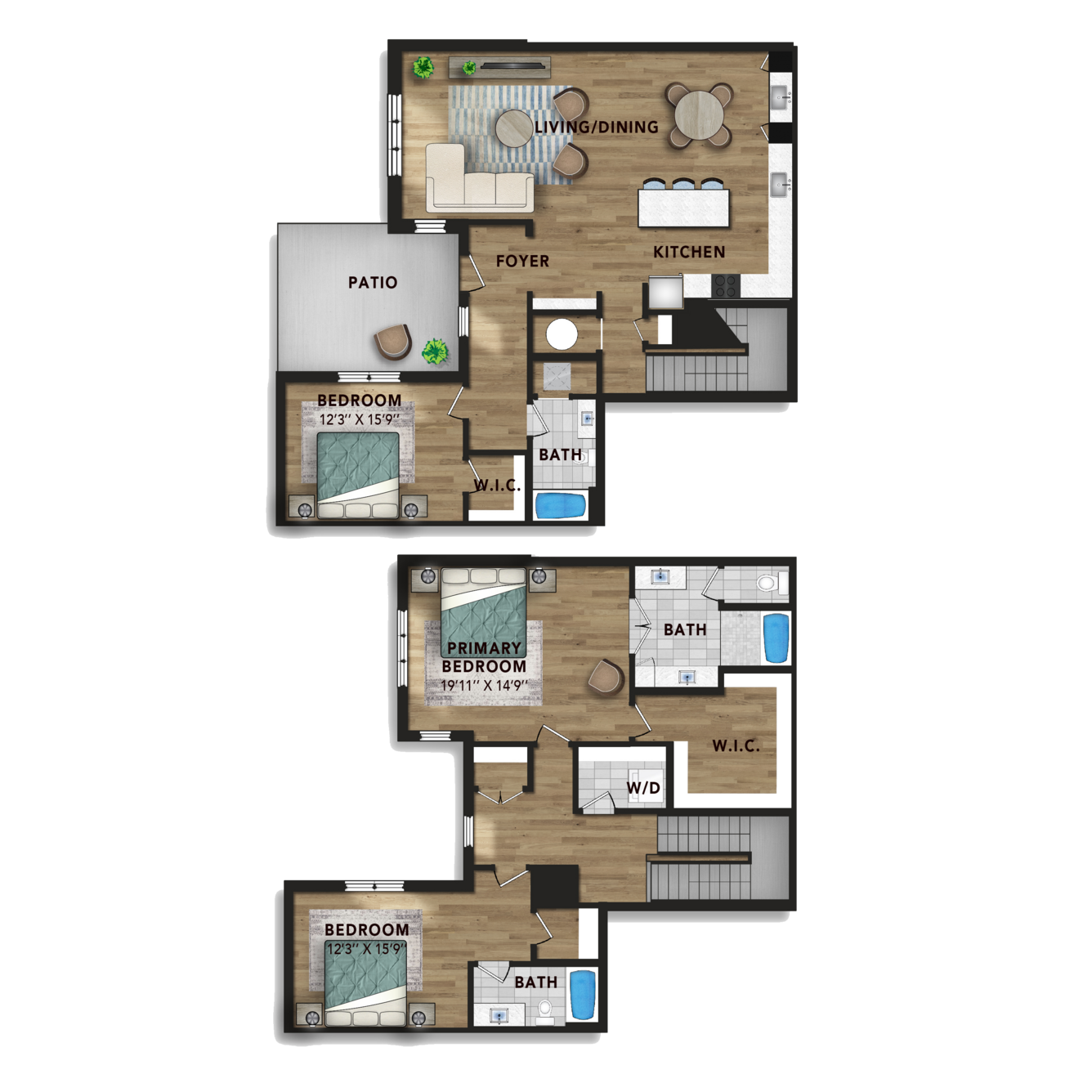 Come home to stunning interiors with beautiful hardwood-style floors throughout the sun-filled living area. In the gourmet kitchen, stainless steel appliances, Carrera marble countertops, an Opalesque glass tile backsplash, and dark, soft-close cabinetry create an elegant cooking space. Each home also boasts the latest smart-home technology such as keyless electronic entry systems and EcoBee thermostats with voice control technology.