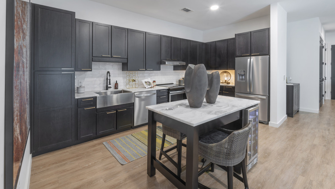 Outside your front door, our community exudes luxury with an unparalleled amenity and entertainment package. Spend your afternoons lounging in the cabanas beside the rooftop pool before enjoying a barbecue dinner at the outdoor grills and alfresco community dining room. If you prefer to stay active, a 24-hour fitness center and a yoga studio with towel service help you get your heart pumping. A full-service concierge, curated community events, and garage parking are also available to all residents.