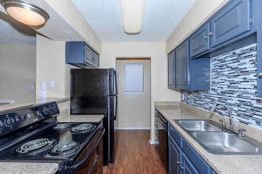We offer one and two bedroom apartment homes in eight different floor plans. Layouts features vary, with plenty of personal touches to customize, including adding a wood-burning fireplace, framed mirrors, paneled doors, and other stylish interior upgrades. All our homes come with hardwood-style flooring, ceiling fans, and walk-in closets with extra storage. No matter which model you choose, you will appreciate the spacious design and attached patio or balcony. Our all-electric kitchens with breakfast bars include options for black appliance packages, granite-style counters, and brushed nickel hardware and lighting.