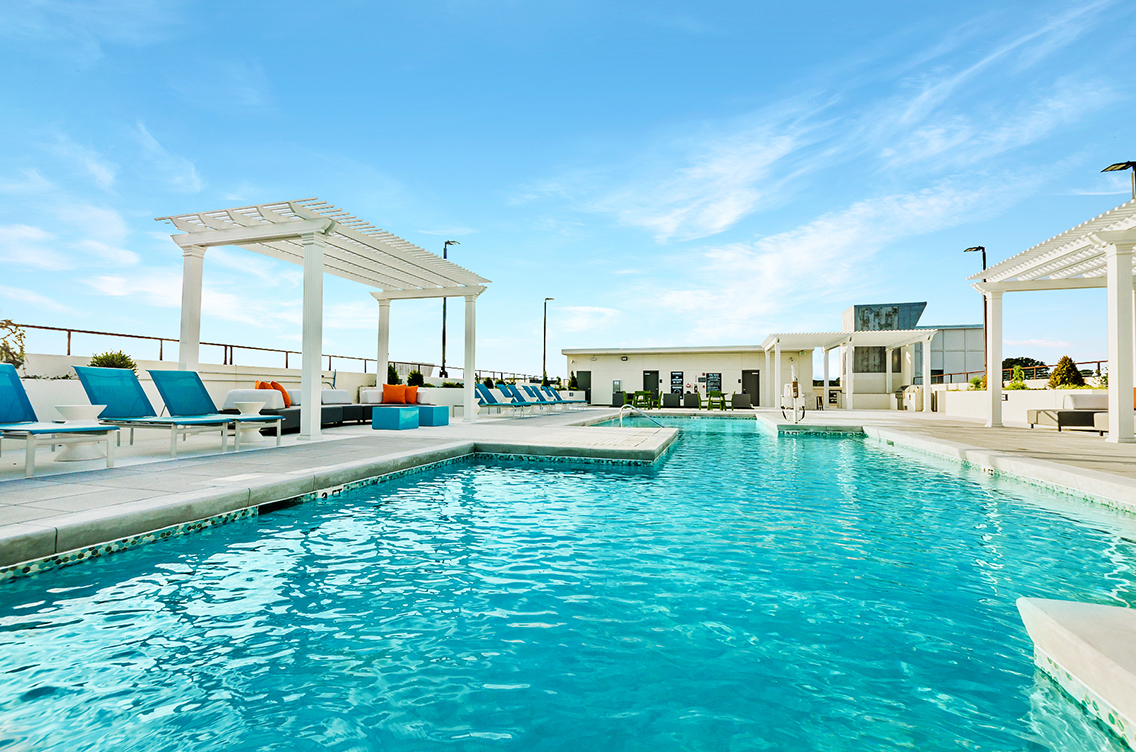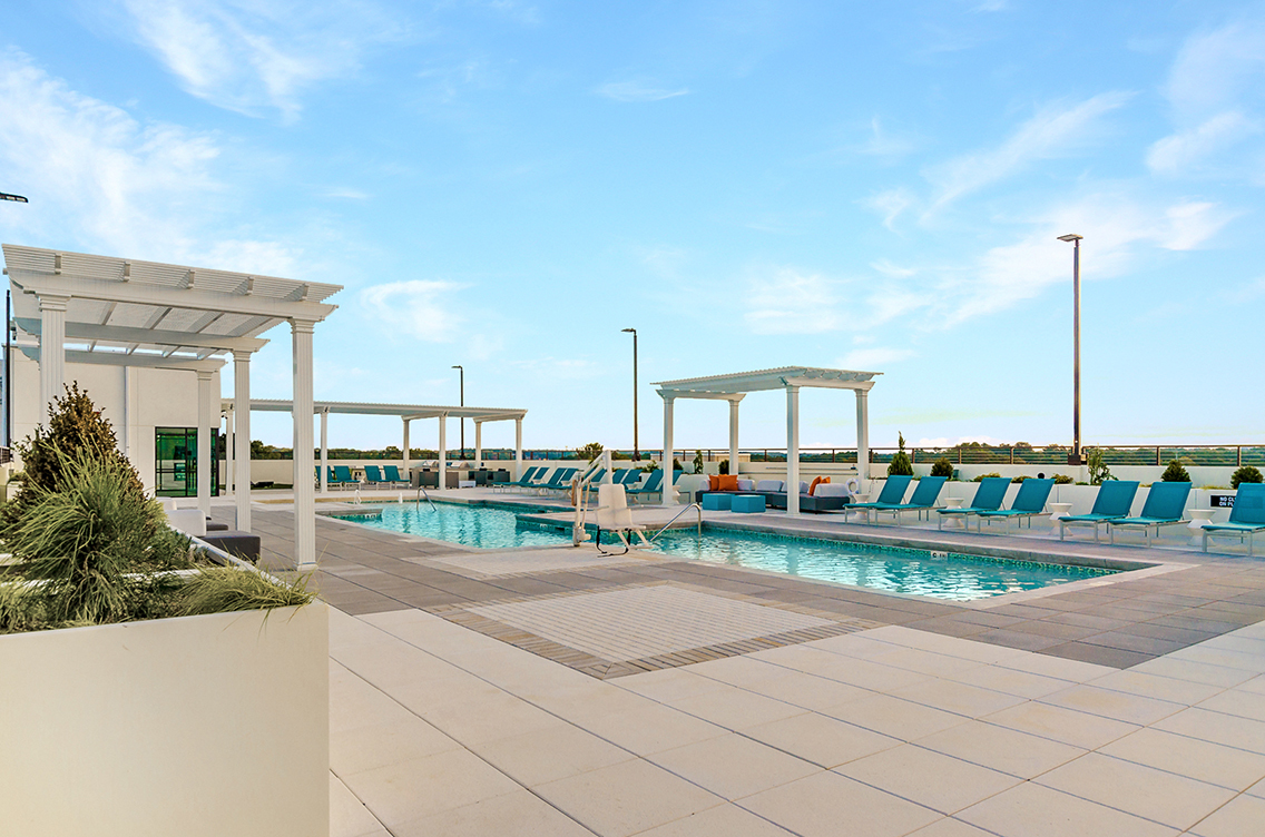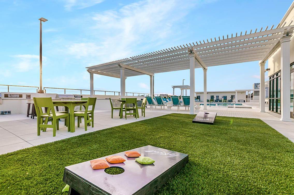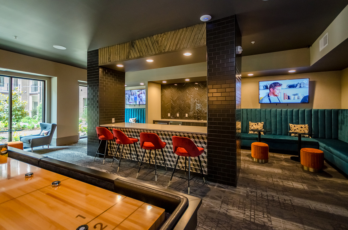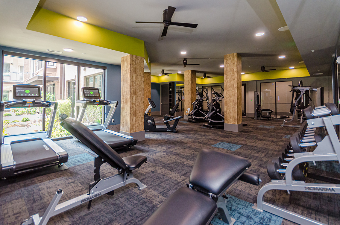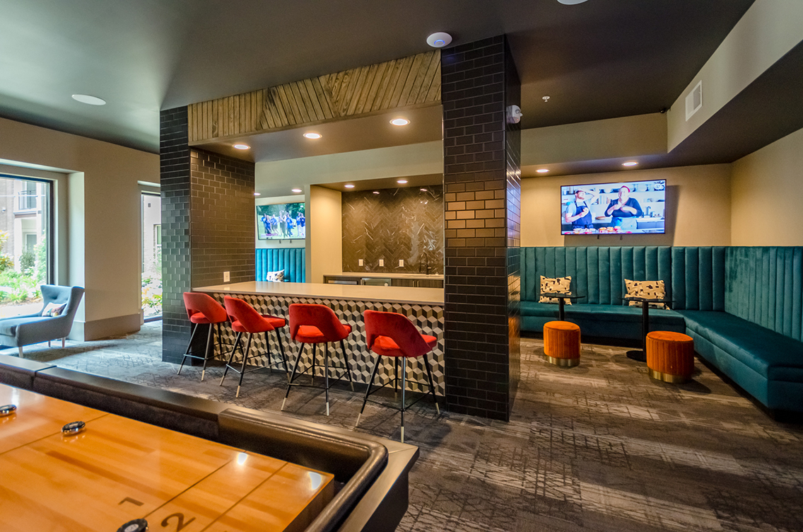 Throughout the mid-rise community, you can take advantage of an impressive collection of amenities. Head up to the rooftop pool for an afternoon in the sun. When you’re ready to head inside, check out the cinema room or entertain guests in the social lounge with a catering kitchen, gaming room, and TVs. Active residents appreciate the 24-hour fitness center and flex workout space for yoga, spin, and more.