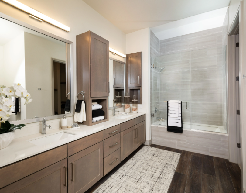Come home to Instrata at Legacy West and discover a luxury residential community set in a lively Plano, TX neighborhood. Each one and two bedroom floor plan boasts an open-concept layout with high-end features such as quartz countertops with waterfall edges, oversized kitchen islands, hardwood-style flooring, and custom cabinetry. Wake up each morning to a bright and spacious bedroom with a walk-in closet and an impressively designed en suite bathroom that features a designer tiled walk-in shower and an oversized soaking tub for a five-star spa experience at home.
