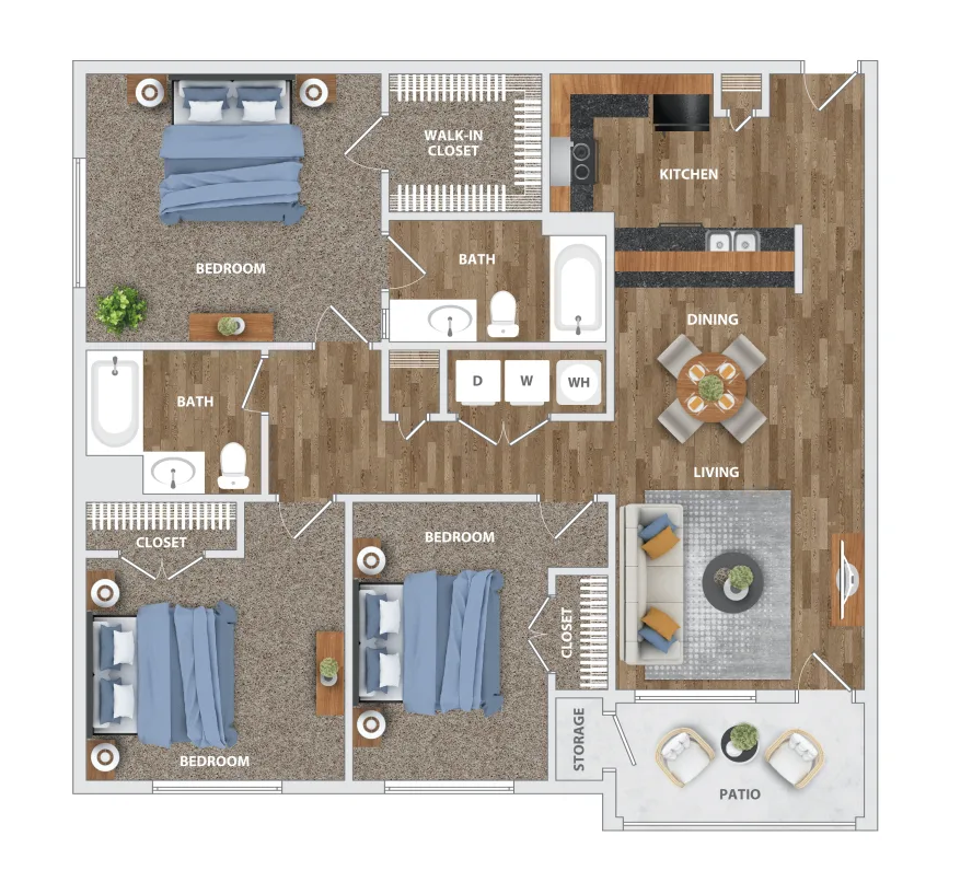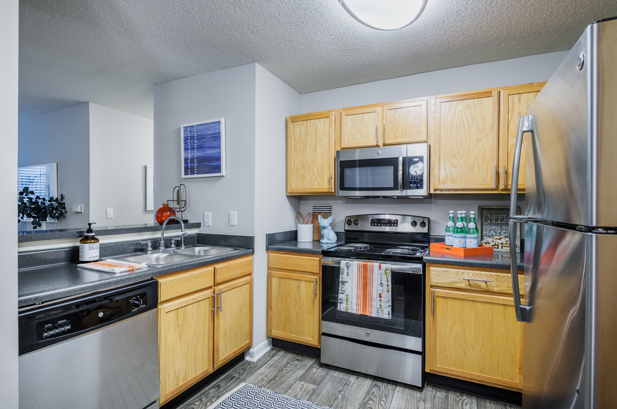 Our one-, two-, and three-bedroom apartments on Greenridge Road in North Charleston, SC are well-appointed with deluxe finishes like stainless steel appliances, upgraded cabinets, and wood-style plank flooring in select units. To keep the good feelings flowing, invigorate your mind and body in the state-of-the-art fitness center, spend a relaxing day at the pool, or easily head into historic Charleston. Our amenities will help you pursue a healthy and comfortable life and our location allows you to experience the vibrancy of Charleston.