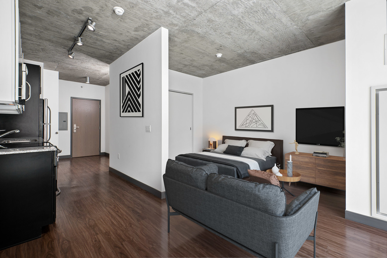The area’s manufacturing buildings embody the strength, boldness, and texture of the neighborhood. Dramatic exposed concrete elements bring that same aesthetic sensibility to JeffJack, with refined material adjacent to the raw quality of concrete. Our LEED-Gold design is apparent to the casual eye, with recycled, yet polished materials. Inside, a lobby of warm whites, grays, and browns welcomes you after a long day of work or play--it's the entryway to a lifestyle you've undoubtedly earned.