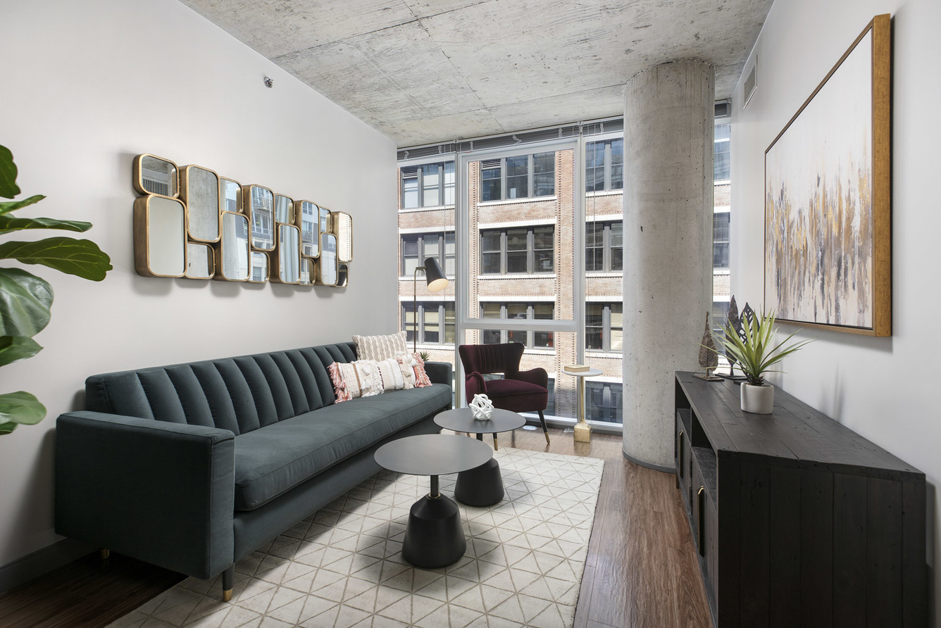 JeffJack Apartments, smartly located at the corner of Jefferson and Jackson in downtown Chicago, is absolutely brilliant. Inside and out.