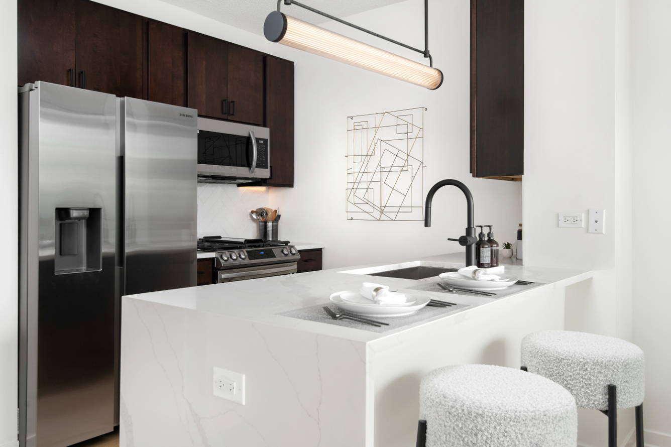 Wake up every morning with Chicago’s amazing skyline views from the floor-to-ceiling windows. You’ll feel like a professional chef when cooking in your modern kitchen that has energy-efficient stainless steel appliances, espresso cabinetry, and stone countertops. For more style in your home, our apartments come with plank flooring. After a busy day, unwind with a calming soak in a stylish bathroom with tile floors. While many models come with balconies where you can enjoy some fresh air, select penthouse apartments have expansive terraces that offer unparalleled relaxation.