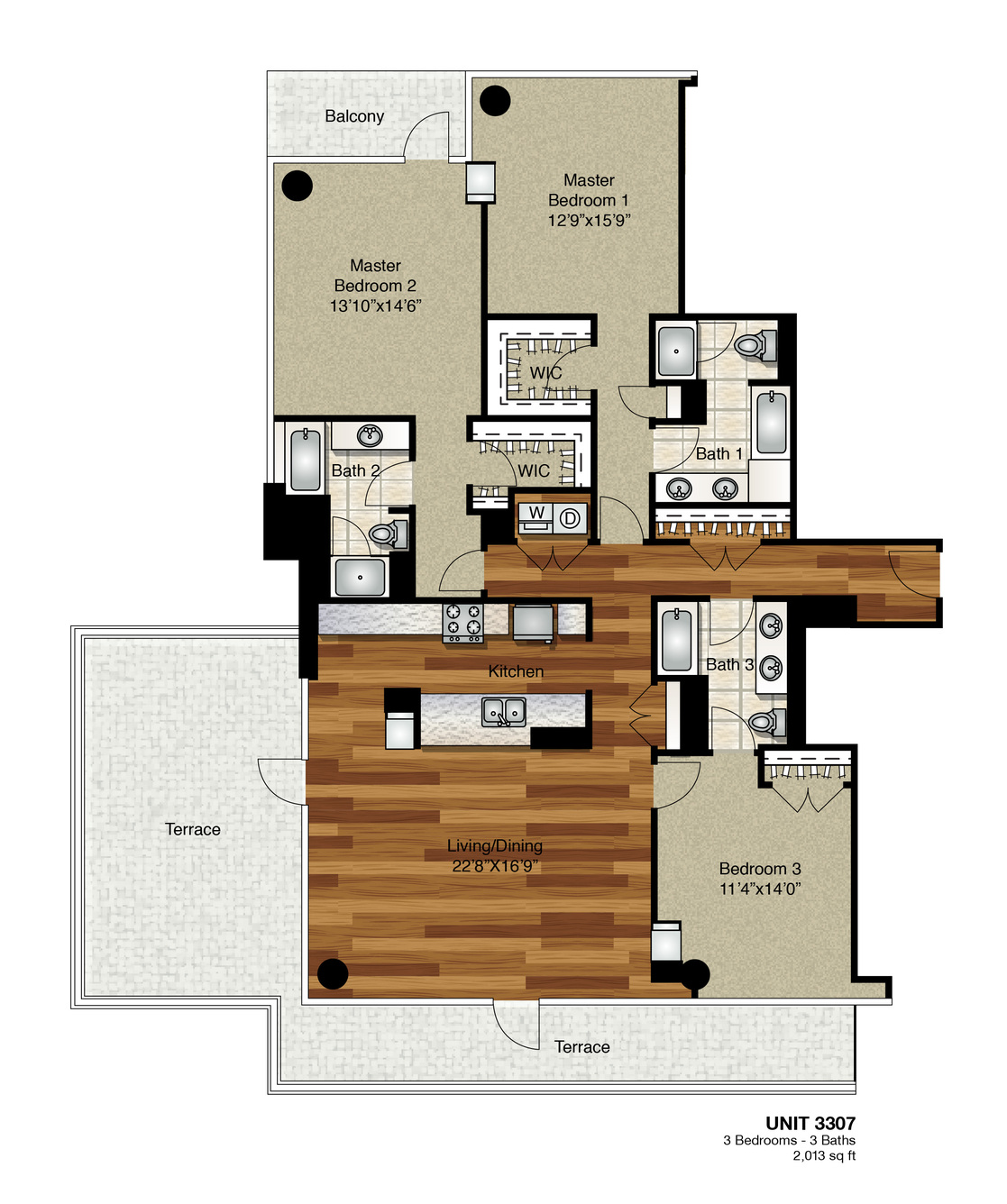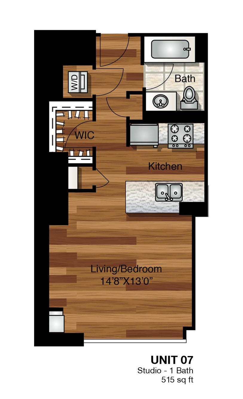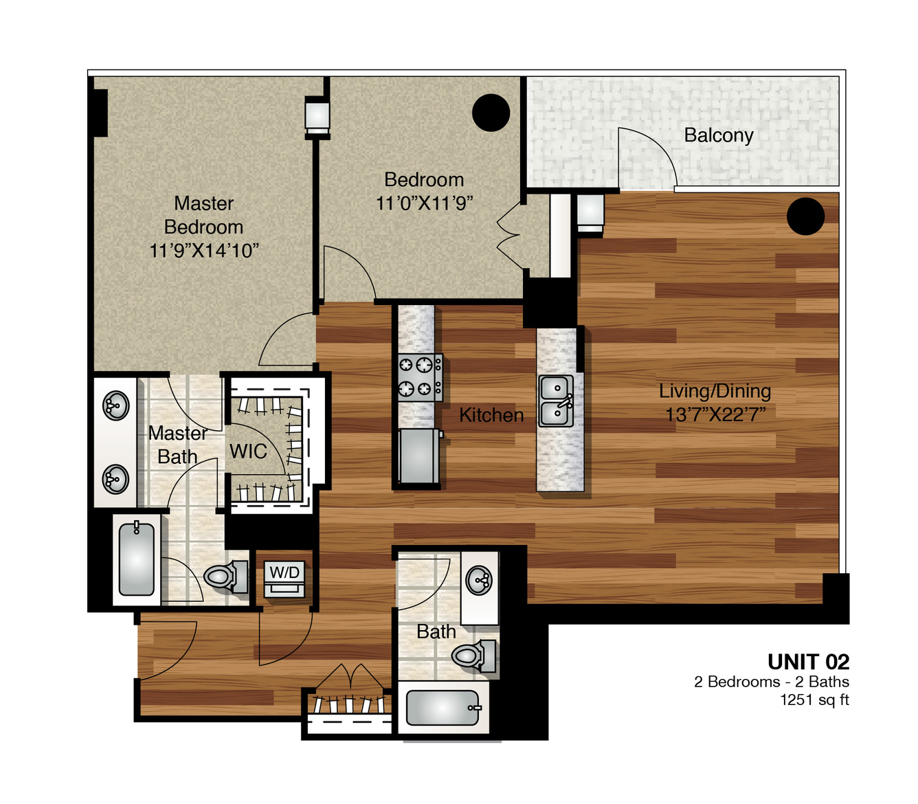 Wake up every morning with Chicago’s amazing skyline views from the floor-to-ceiling windows. You’ll feel like a professional chef when cooking in your modern kitchen that has energy-efficient stainless steel appliances, espresso cabinetry, and stone countertops. For more style in your home, our apartments come with plank flooring. After a busy day, unwind with a calming soak in a stylish bathroom with tile floors. While many models come with balconies where you can enjoy some fresh air, select penthouse apartments have expansive terraces that offer unparalleled relaxation.