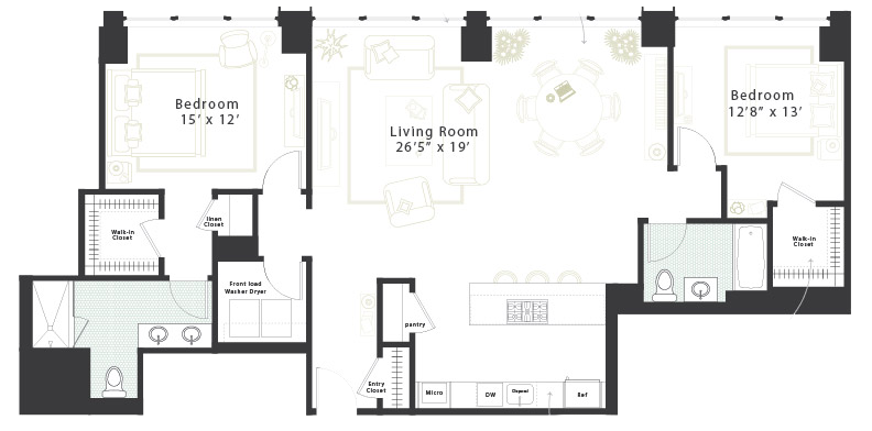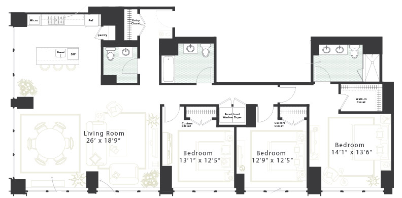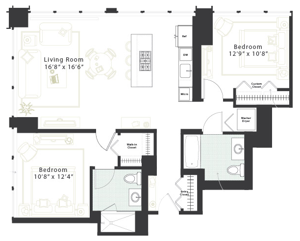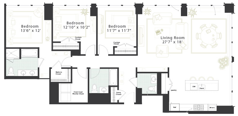 • Floor-to-ceiling windows designed for maximum light, views, sound attenuation, and energy efficiency