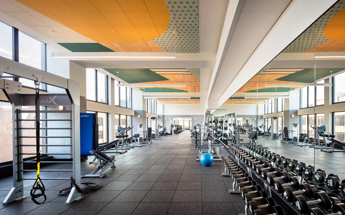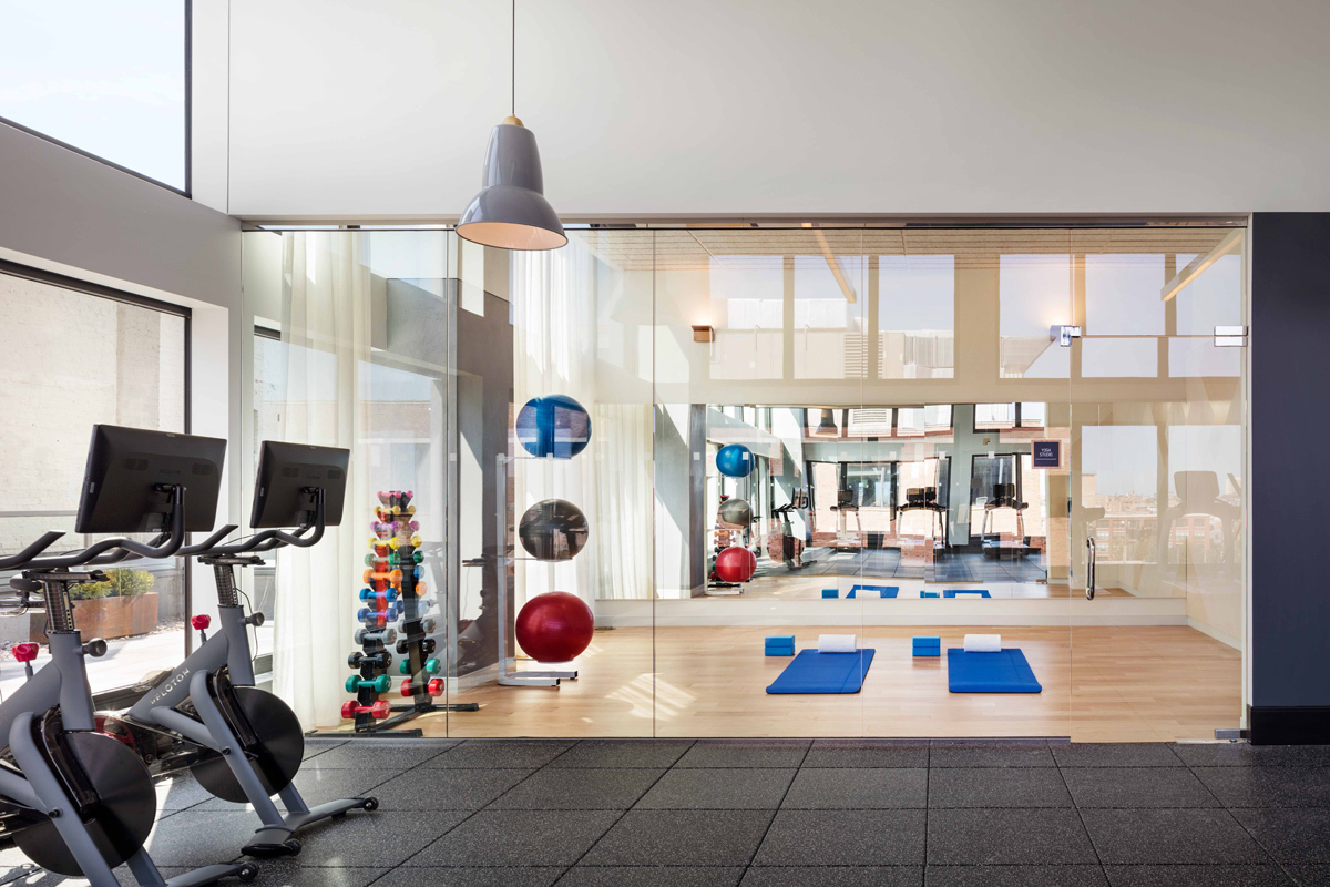 • Fitness center featuring cardiovascular, strength, and training equipment