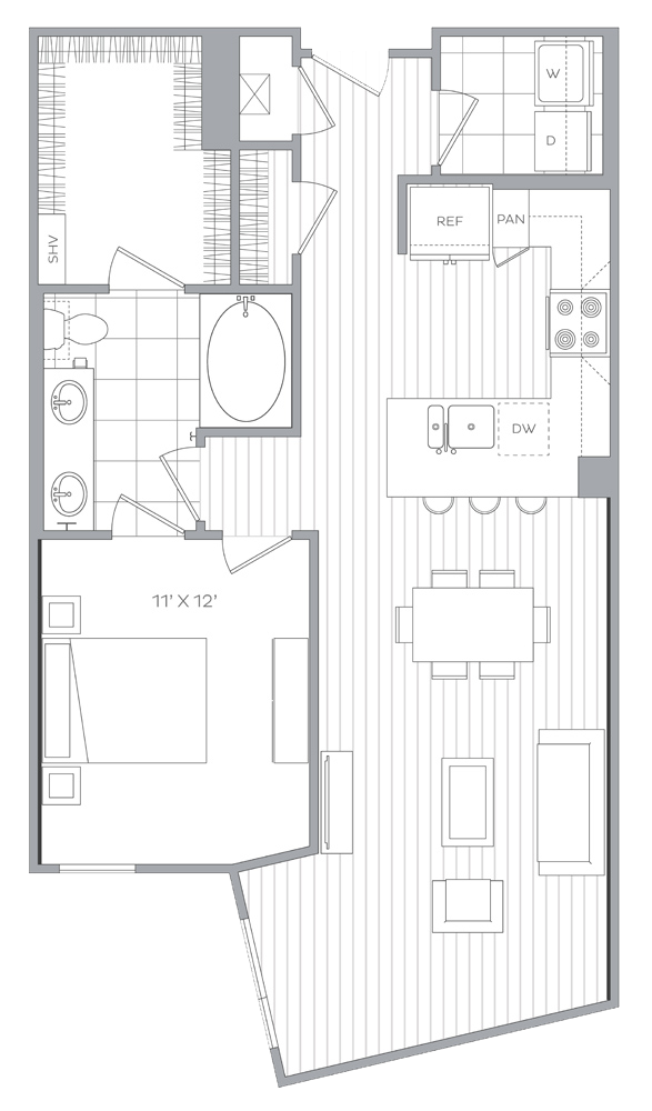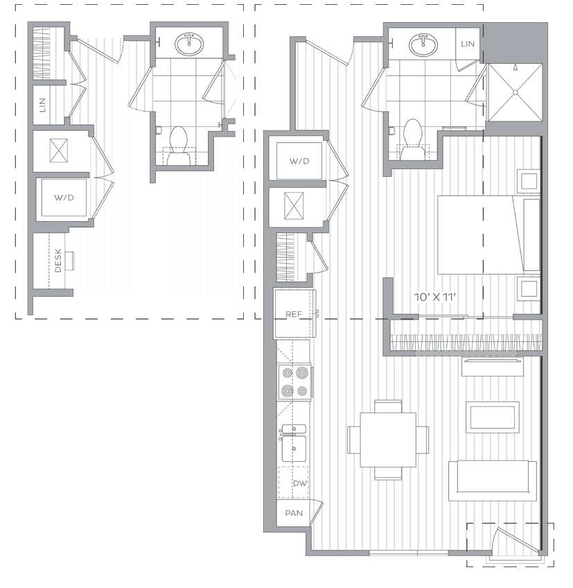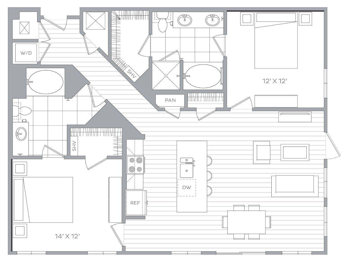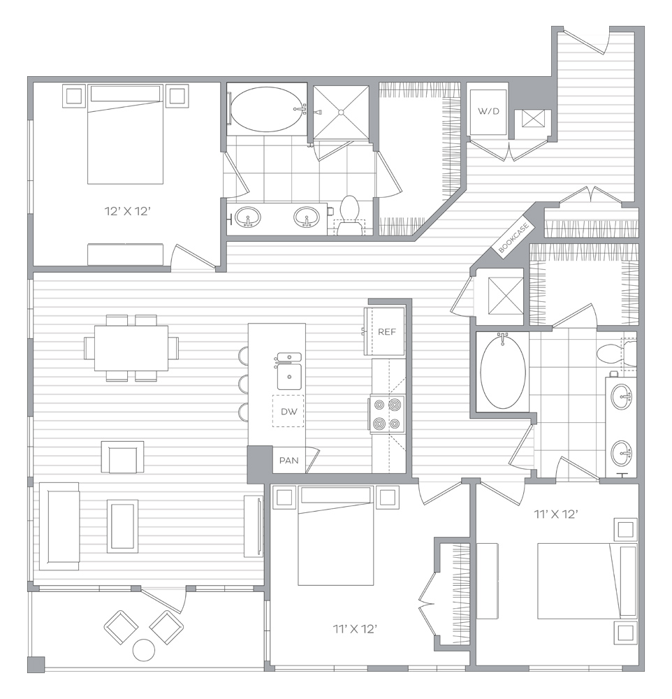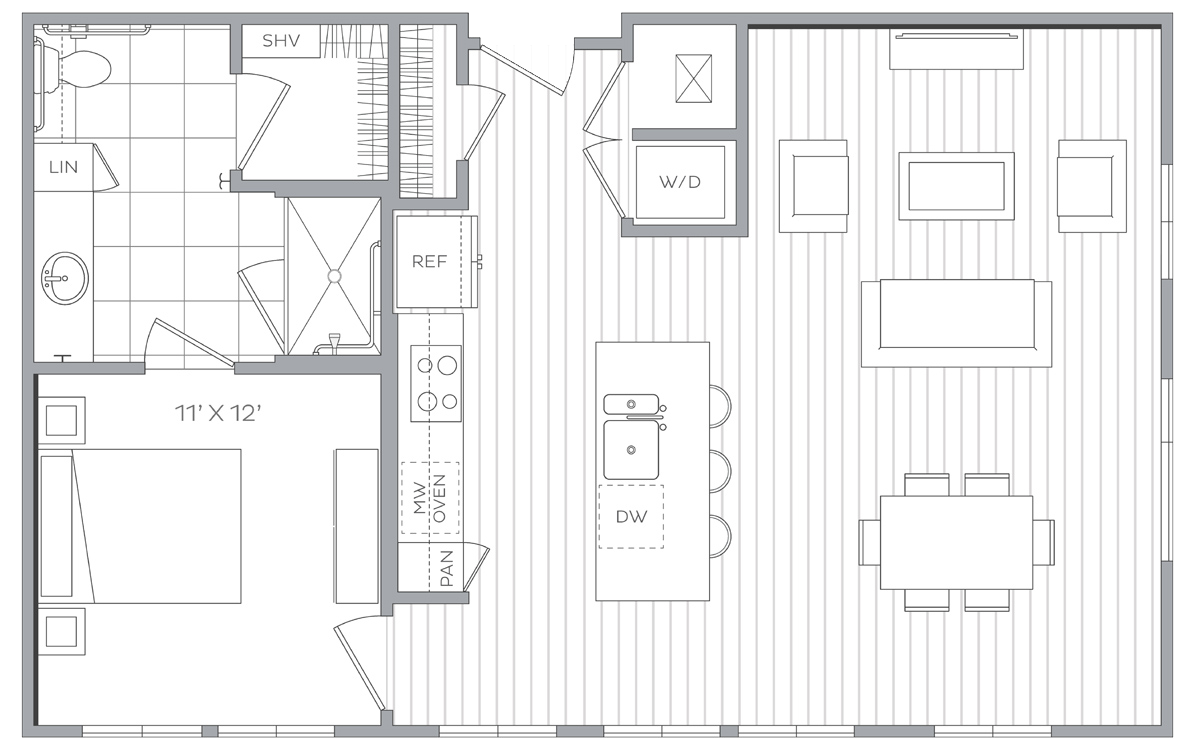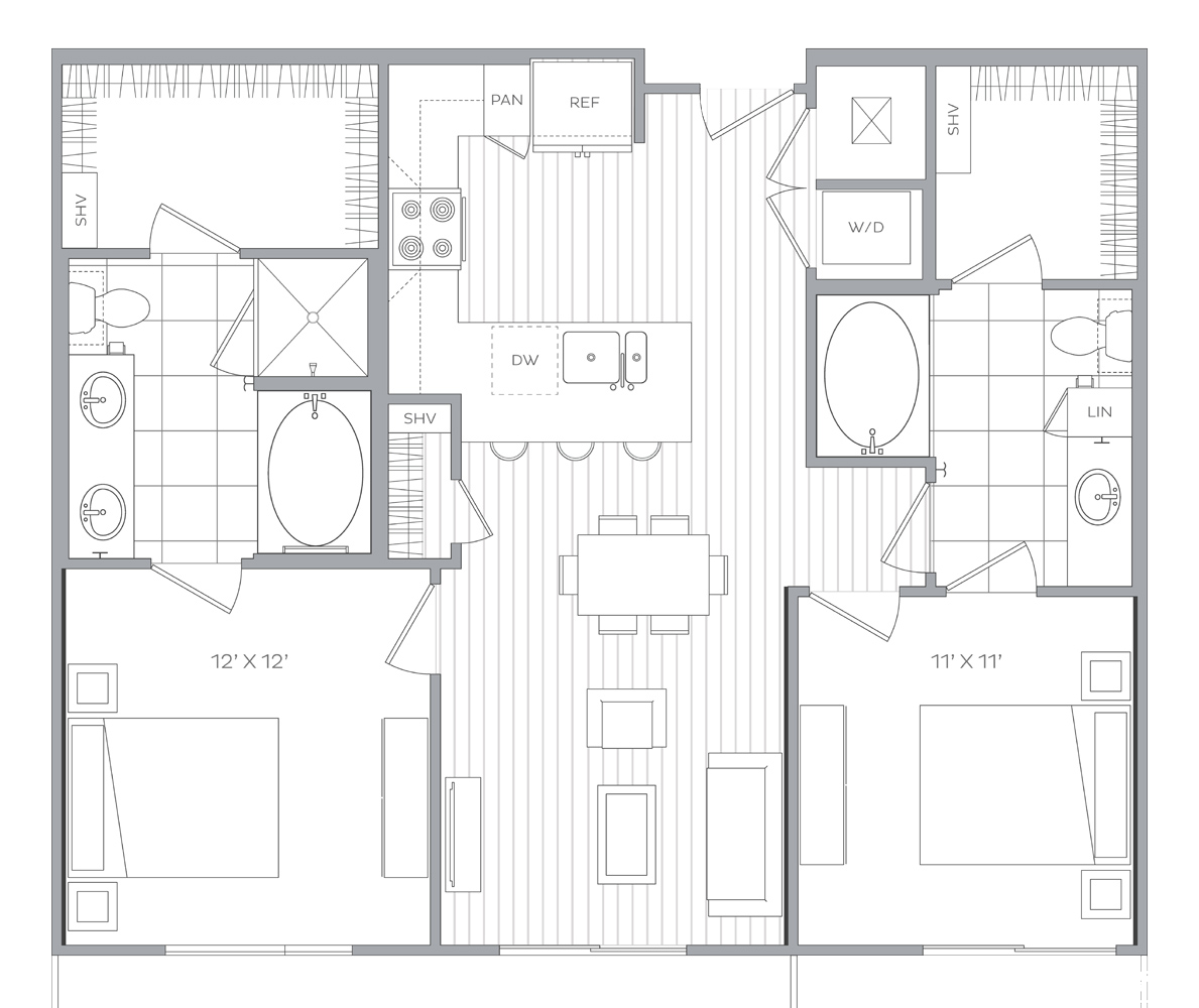 Choose from studio, one, two, or three open-concept apartments that feature premium materials and stylish finishes. Inside each home, you will find gourmet kitchens with designer cabinetry and under lighting. Additionally, beautiful stainless steel appliances will complement the granite or quartz counters and stone tile backsplashes. The rest of your apartment showcases both functional and elegant features including accent walls complementing the wood-style flooring in the living and dining areas and spacious walk-in closets. Your apartment will also include built-in bookcases, computer desks and dry bars in select apartments. For your convenience, you will also have a full-size washer and dryer.