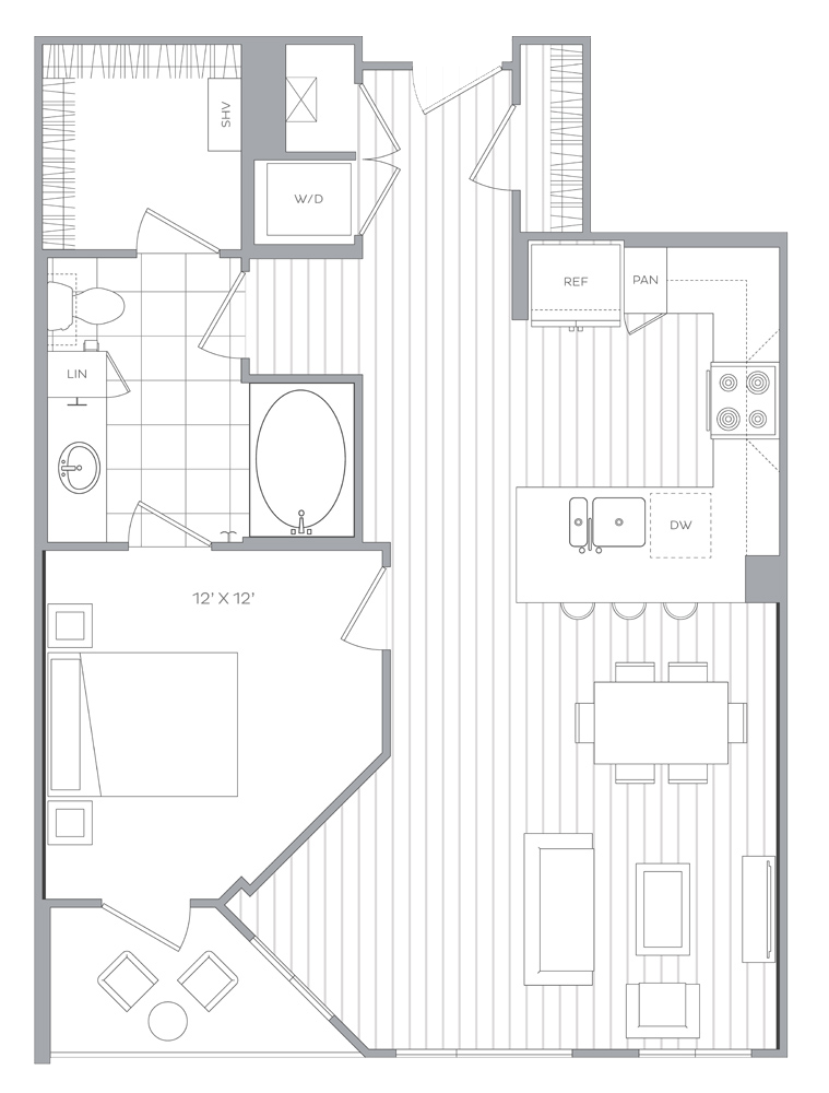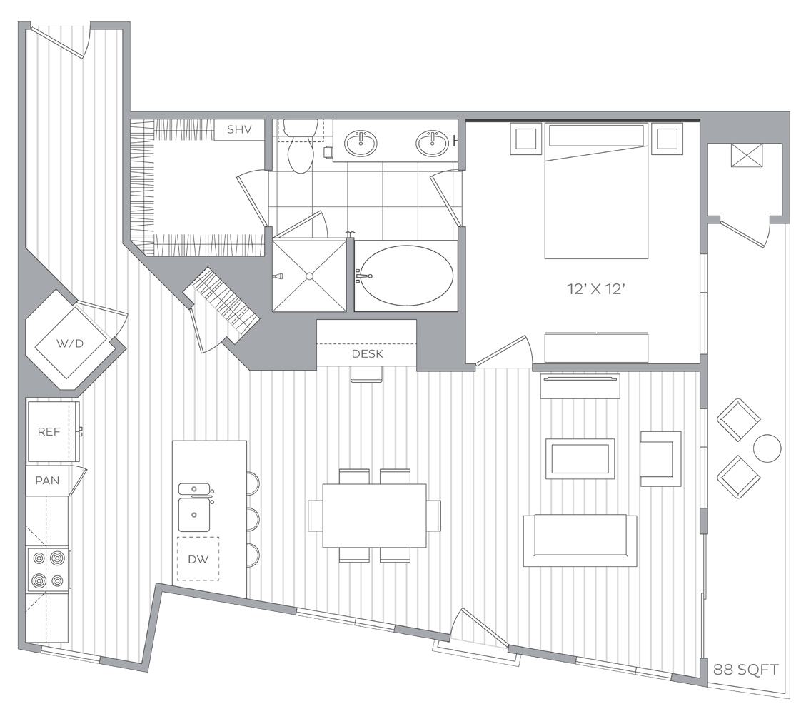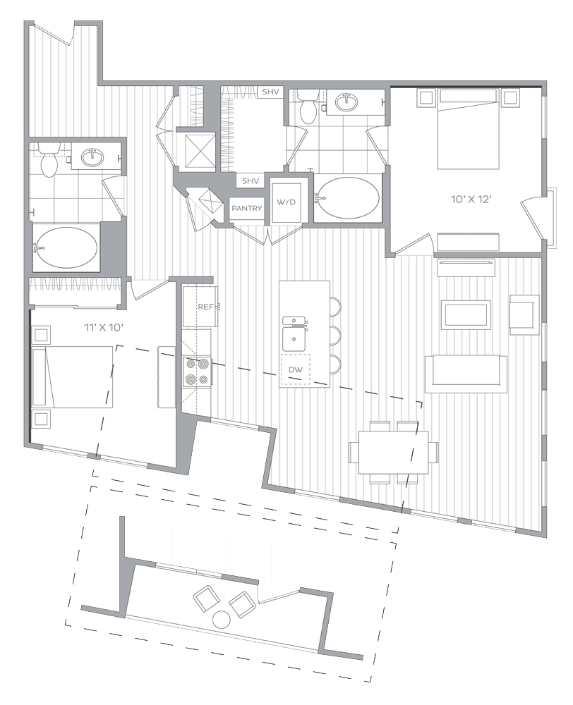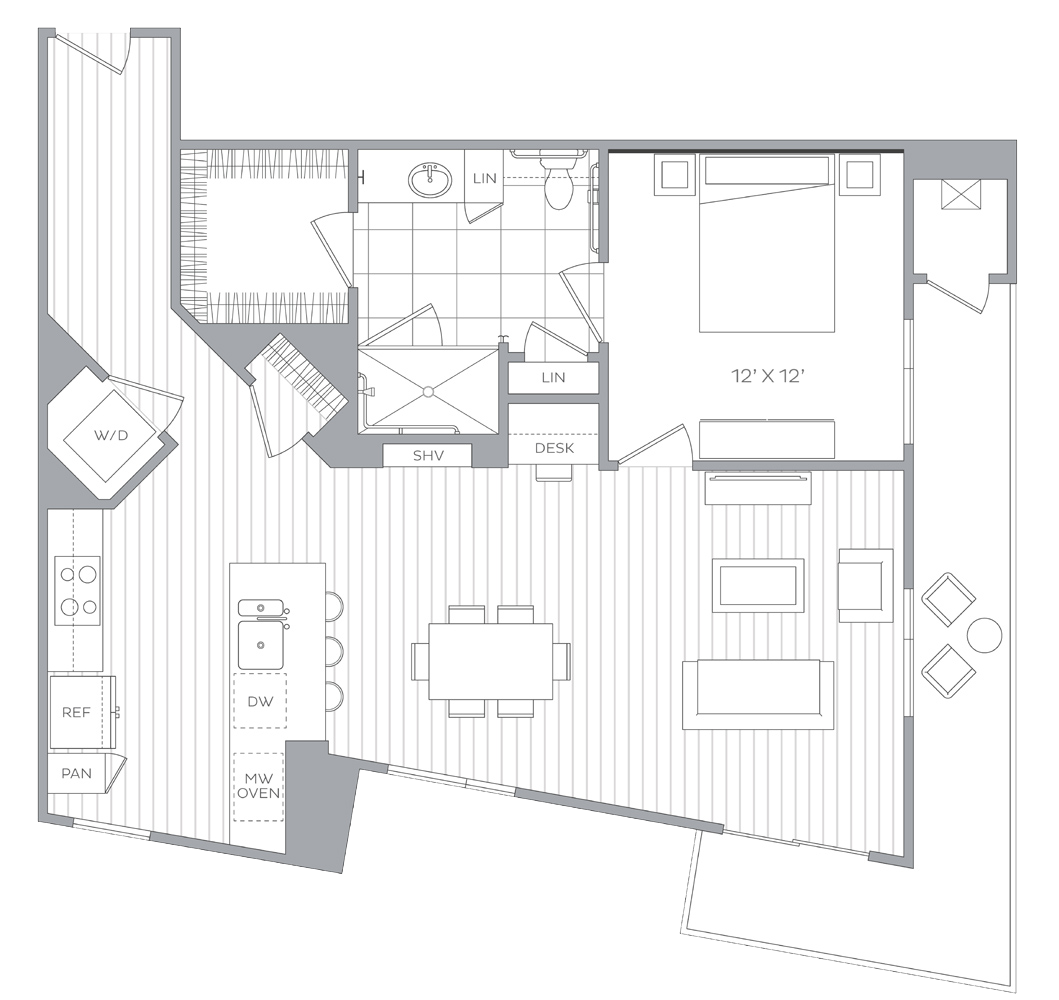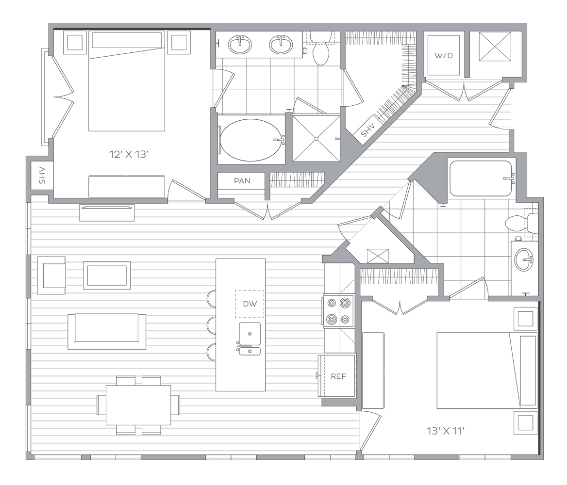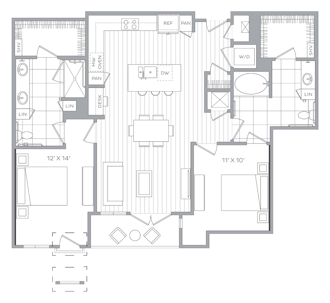 Choose from studio, one, two, or three open-concept apartments that feature premium materials and stylish finishes. Inside each home, you will find gourmet kitchens with designer cabinetry and under lighting. Additionally, beautiful stainless steel appliances will complement the granite or quartz counters and stone tile backsplashes. The rest of your apartment showcases both functional and elegant features including accent walls complementing the wood-style flooring in the living and dining areas and spacious walk-in closets. Your apartment will also include built-in bookcases, computer desks and dry bars in select apartments. For your convenience, you will also have a full-size washer and dryer.