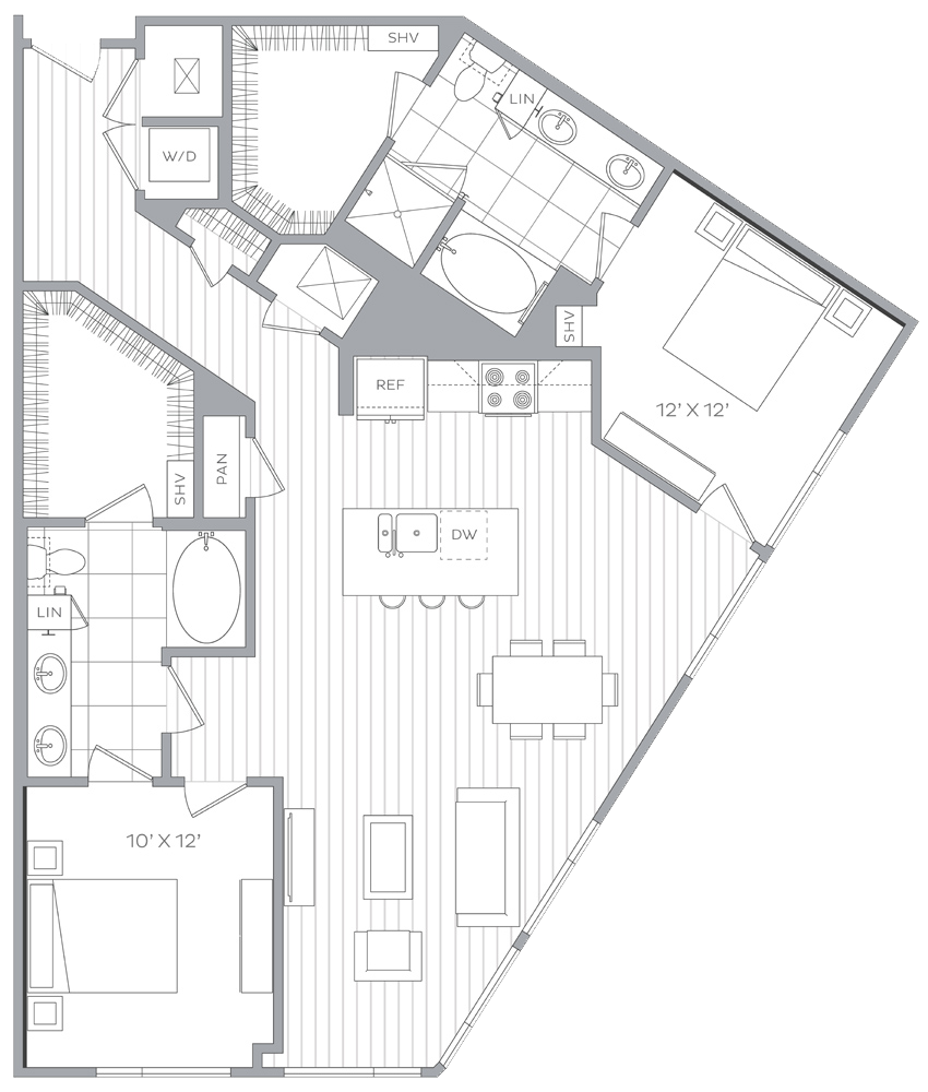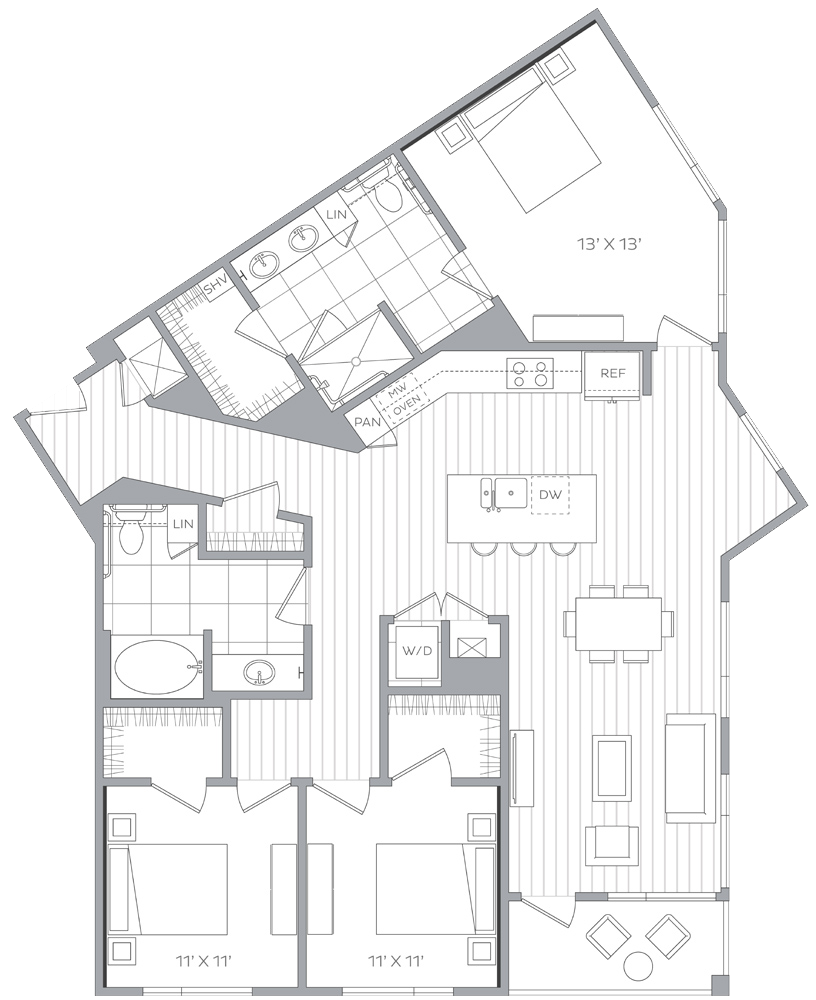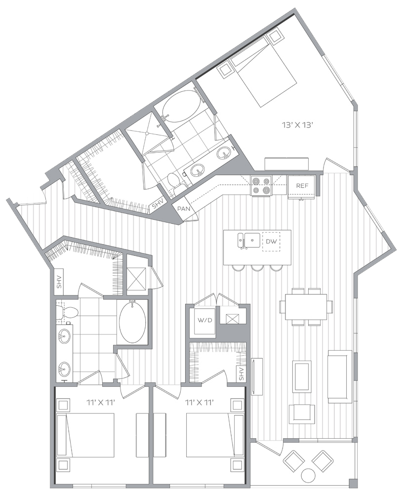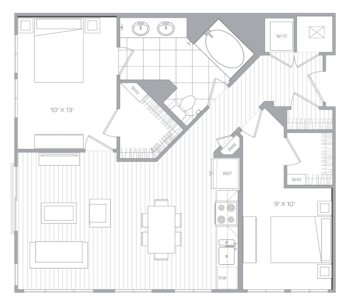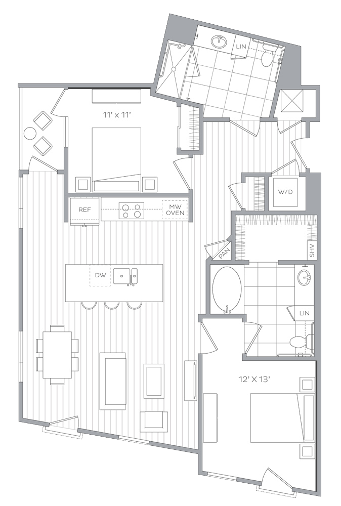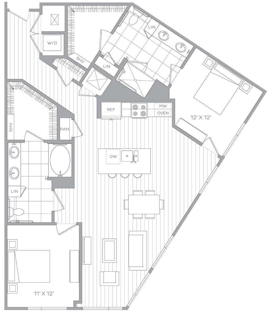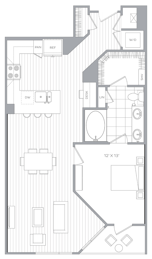 Choose from studio, one, two, or three open-concept apartments that feature premium materials and stylish finishes. Inside each home, you will find gourmet kitchens with designer cabinetry and under lighting. Additionally, beautiful stainless steel appliances will complement the granite or quartz counters and stone tile backsplashes. The rest of your apartment showcases both functional and elegant features including accent walls complementing the wood-style flooring in the living and dining areas and spacious walk-in closets. Your apartment will also include built-in bookcases, computer desks and dry bars in select apartments. For your convenience, you will also have a full-size washer and dryer.