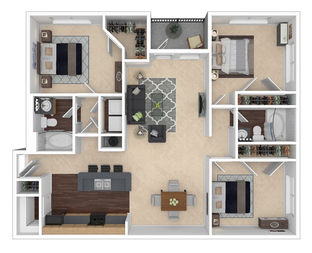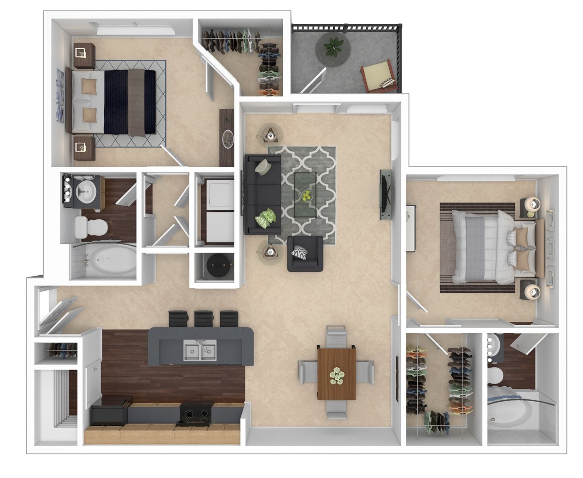Adding luxury and comfort to your experience, our amenities rival those of high-end resorts. Take a soothing dip in our lagoon-style pools or work out in our newly renovated fitness center. Our tennis court and sand volleyball court are all set to indulge your sporty, competitive side. Enjoy the company of your pets in our lovely dog park or lakeside walking trails. We help simplify your everyday lifestyle by providing valet trash and round-the-clock emergency maintenance services, as well as a car-washing station on site. Our resident portal makes for hassle-free payment options.
