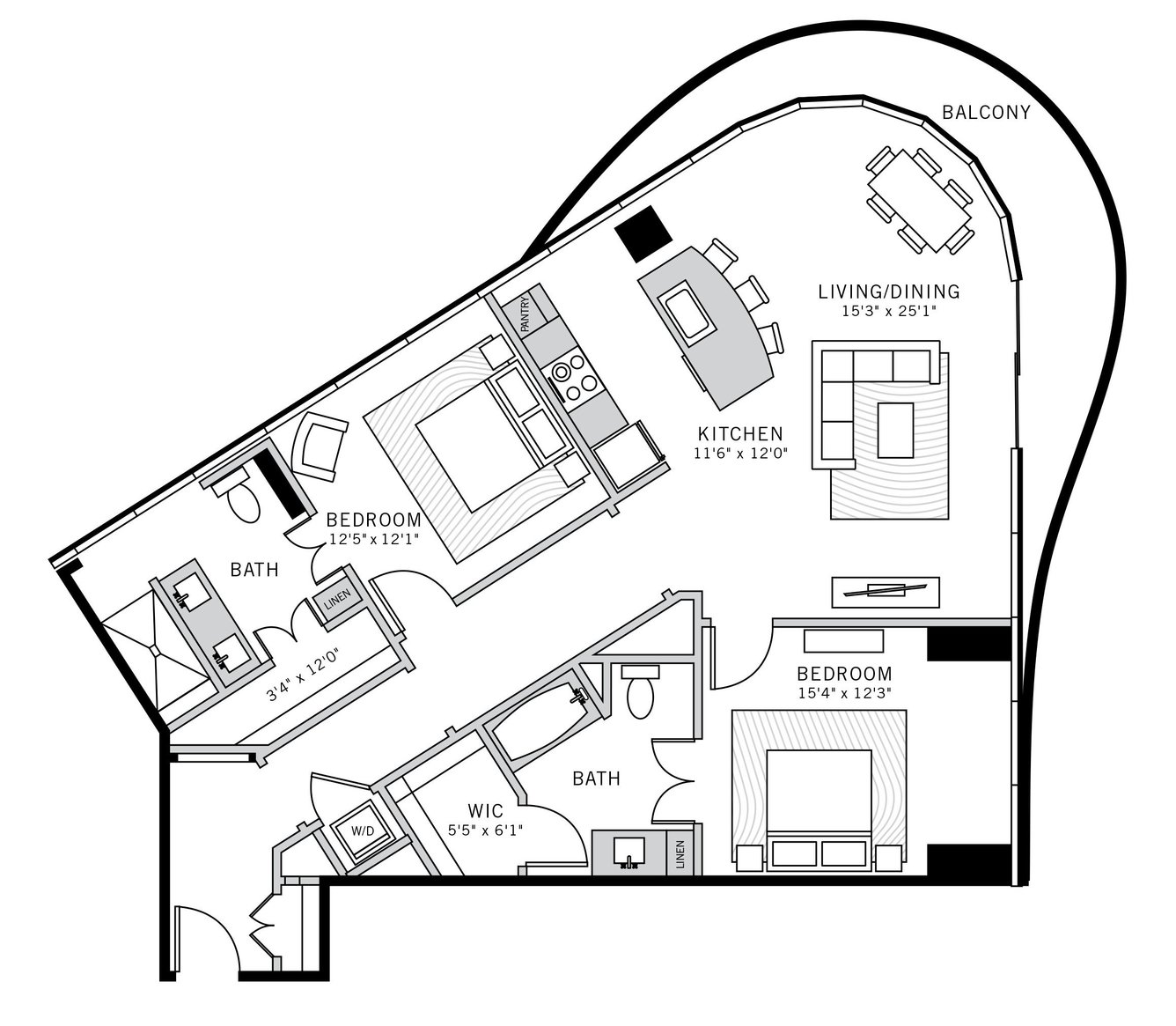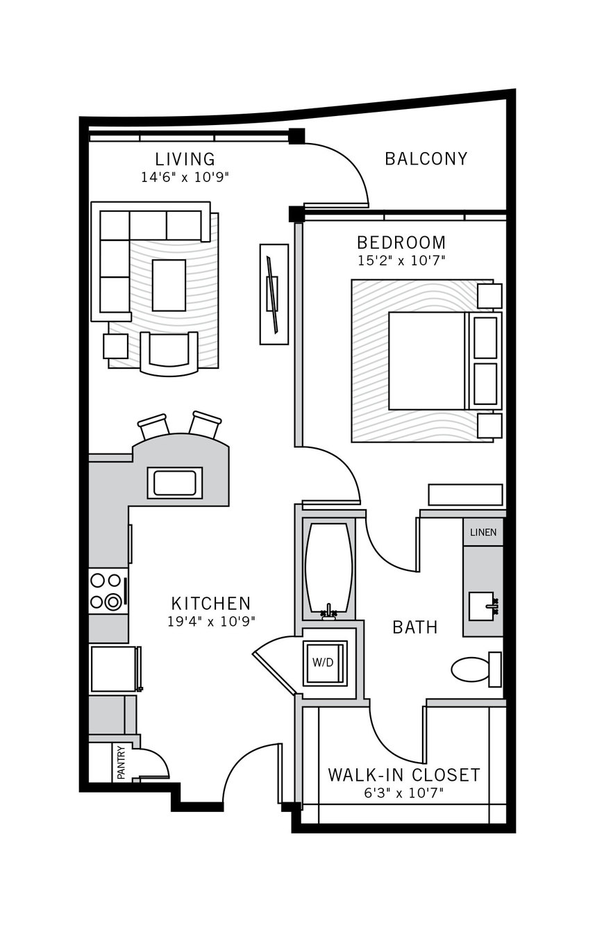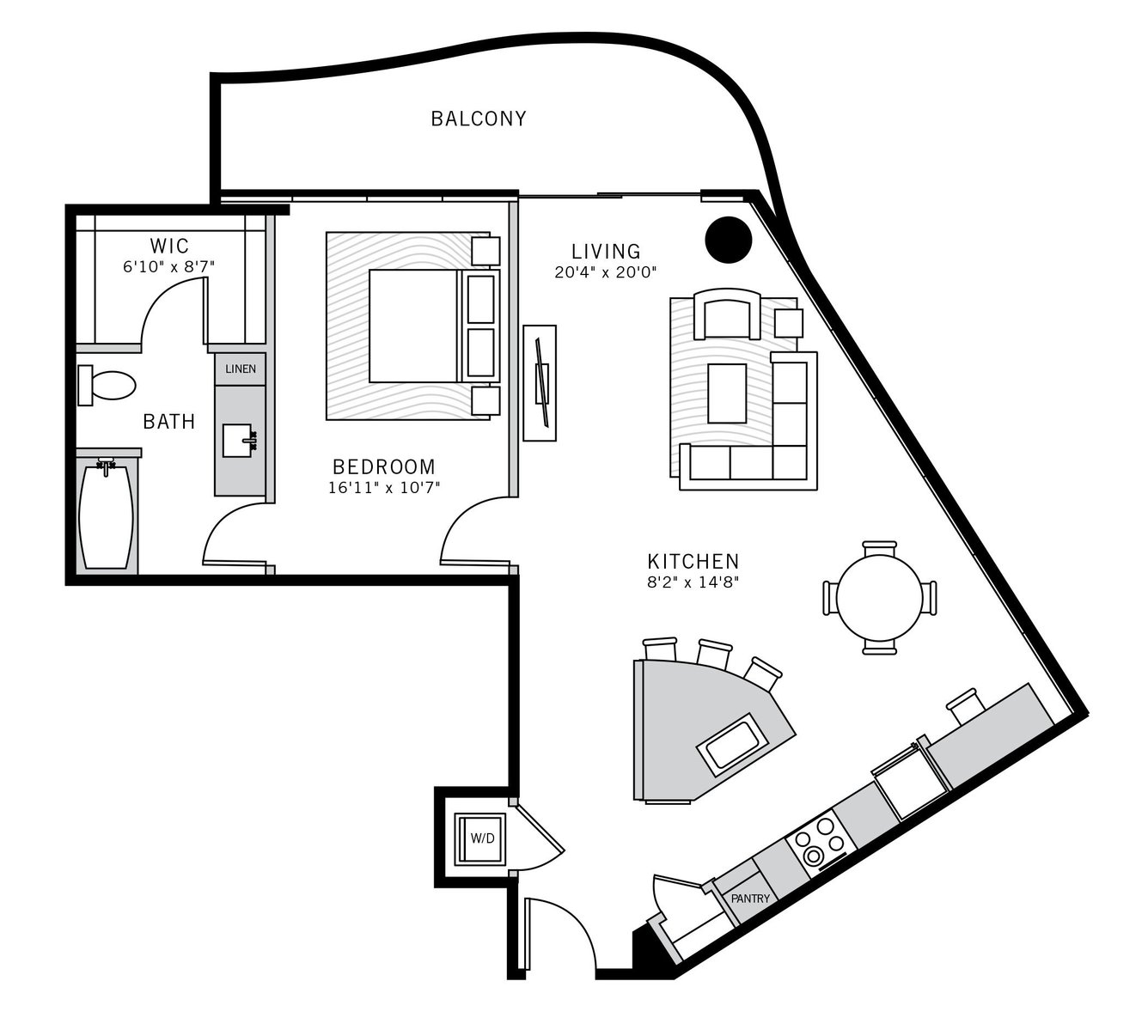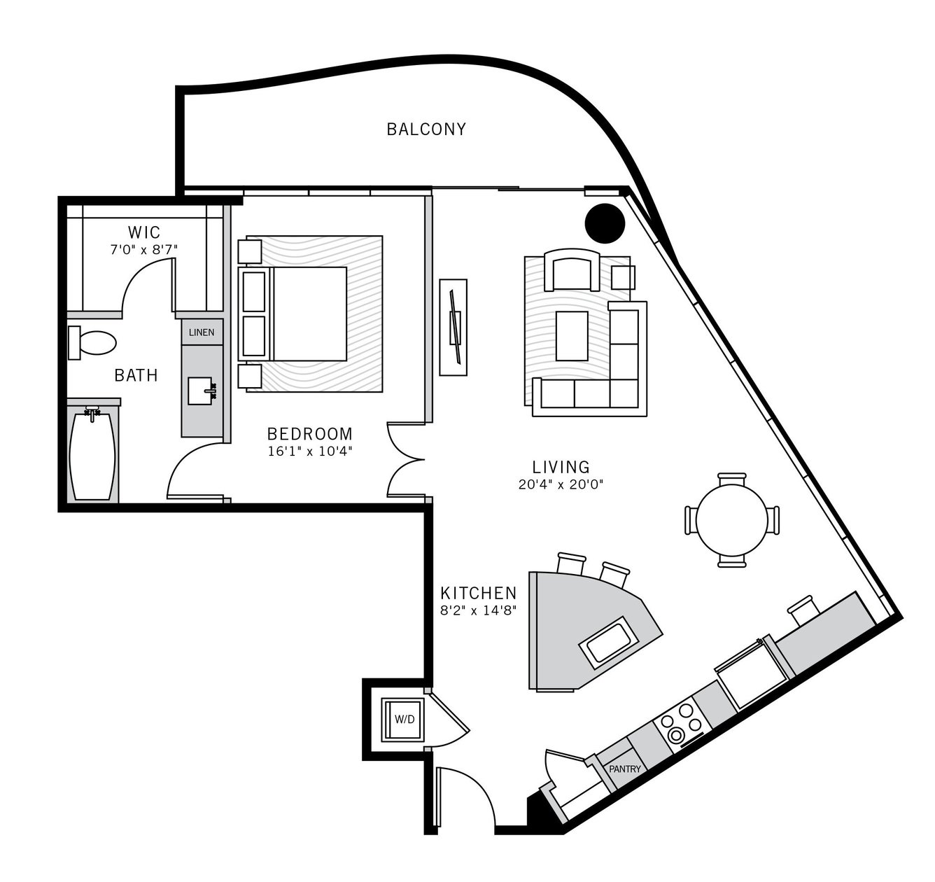 From the uniquely curved architecture to the unparalleled selection of fine interior features, One Uptown delivers a luxury living experience second to none in Dallas, TX. Within our 20-story community, you’ll find studio, one, and two bedroom floor plans with open layouts, as well as penthouses that set the new benchmark for luxe in Uptown. Complementing your sophisticated space, our community offers posh amenity areas and a Walk Score of 96 that puts everything you love about Dallas right outside your door.