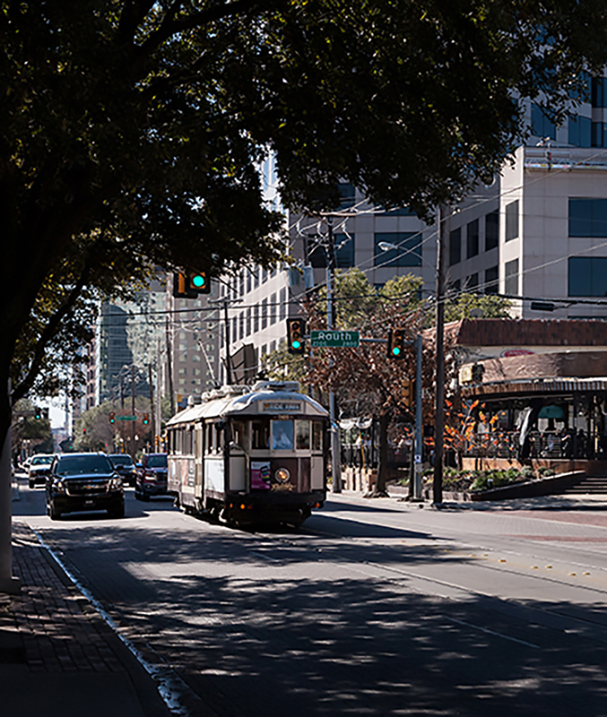 Around the community, you’ll discover an amenity space for every occasion. The second-floor resident lounge features a specialty coffee machine, plenty of seating, and complimentary high-speed internet. With personal trainers, cold towel service, and premier equipment, our fitness center brings all the convenience of a full-service gym straight to you. After your workout, relax with a dip in our glass-bottom pool or while taking in the view from the Sky Deck. While the restaurant deck features world-class service at Fogo de Chão and Circo, our surrounding Uptown neighborhood is also home to more fine dining and nightlife than anywhere else in the metro. Hop aboard the McKinney Trolley and enjoy easy access to West Village, the Arts District, and a wealth of shopping and entertainment.