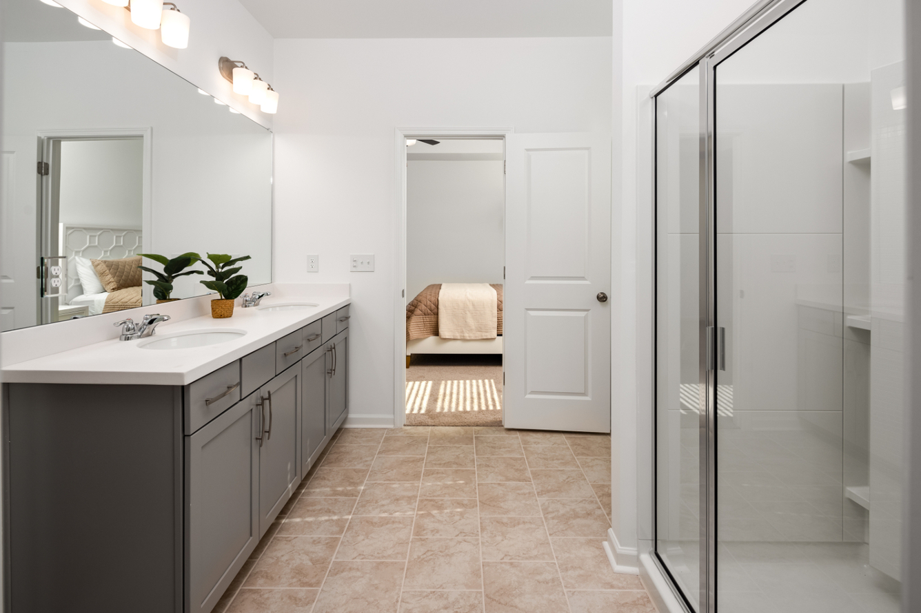 • Fiberglass Slide in Framed Shower in Primary Bedroom