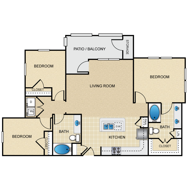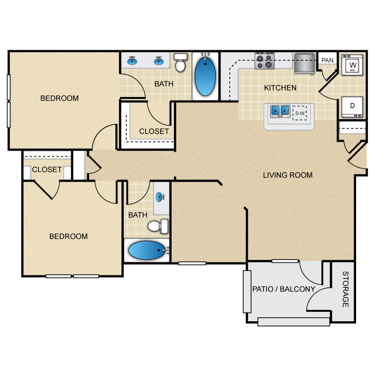 Choose from our array of one, two, and three bedroom floor plans and your next home will have a spacious, open-style interior with nine-foot ceilings and hardwood flooring. A gourmet-style kitchen with sleek black or stainless steel appliances and espresso cabinets will bring out the chef in you. Some homes include an island breakfast bar, while each contains a carpeted dining room. Depending on the model you select, you can create an outdoor oasis on your balcony or convert your den space into a media or hobby room. All our apartments offer spacious walk-in closets and outdoor storage, and some even include laundry rooms.