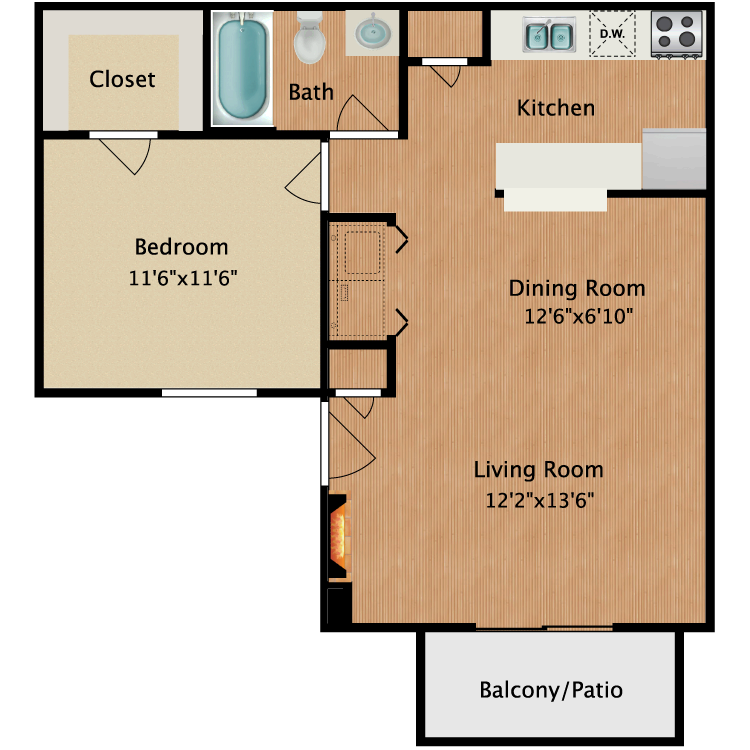 All of our well-appointed apartments boast walk-in closets and an ideal mix of both carpet and hardwood-style flooring. In the kitchens, you’ll find electric appliances, including a dishwasher, a breakfast bar, and plenty of cabinet space. The attached balcony or patio provides the perfect place to enjoy the outdoors from the comfort of home. Your apartment will also have washer and dryer connections, but the community contains an on-site laundry center, should you prefer to use it.