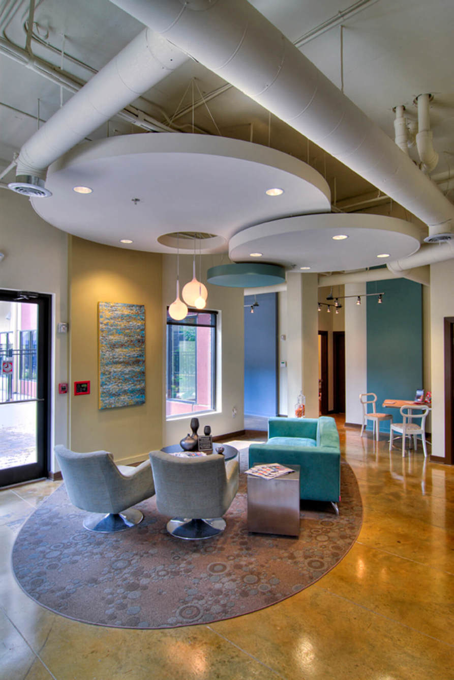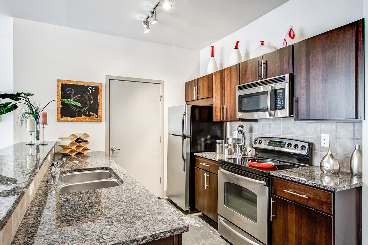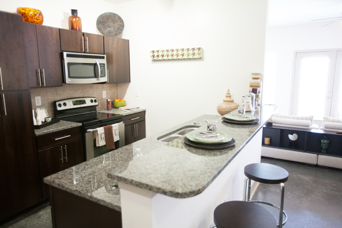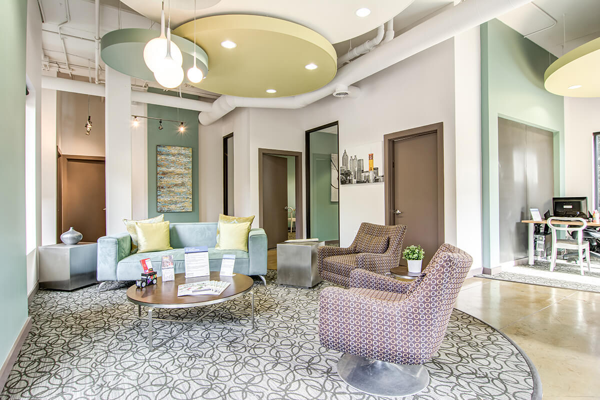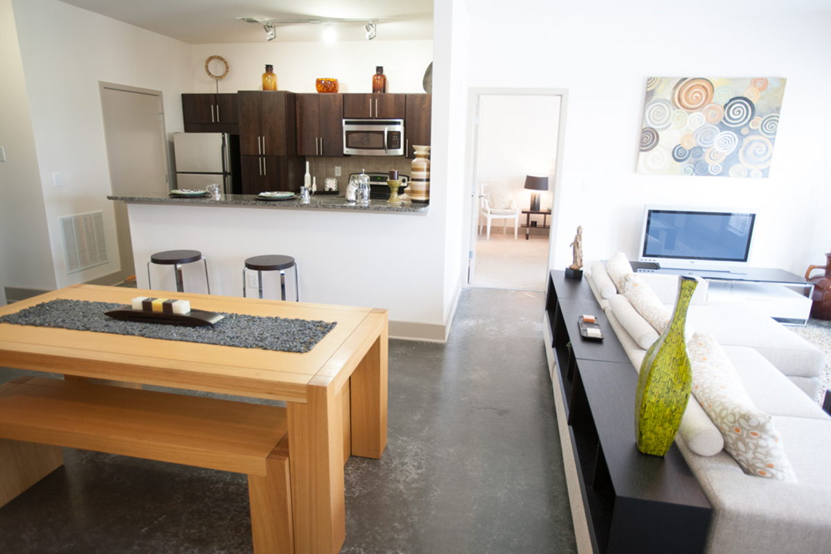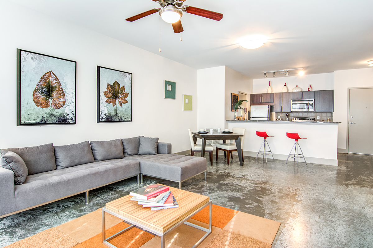 At Pencil Factory Flats, we not only offer studio, one-, and two-bedroom lofts smack dab in downtown Atlanta, GA, but also strive to cultivate a powerful sense of community for all our residents. Right off the bat, we offer a staggering 30 different floor plans that range in layout and amenities, all to give you maximum freedom to find the best apartment for your particular vision of home. Our homes provide ample space in every room, with 9 to 20-foot vaulted ceilings depending on your floor plan. Kitchens boast stainless steel appliances, granite countertops, and mahogany wood cabinetry that complements the hardwood floors, while bathrooms have separate showers and optional garden bathtubs. We especially recommend our homes with washers and dryers included, and floor plans with large patios or Juliet balconies so you can enjoy the much-envied city view they provide. However, community is about more than just your own home. Pencil Factory Flats curates a warm community atmosphere with the common spaces our residents share, like the social courtyard with grilling stations and gorgeous fountains, the resort style pool with outdoor relaxation cabanas, and our very own cardio gym. Meet your neighbors as you both enjoy the dramatic views of downtown and midtown Atlanta accessible from our space, or invite guests who can make ready use of our parking deck and proximity to I-75/85 and I-20, connecting the city to us and us to all of Atlanta and beyond. In addition to our physical nearness to downtown’s numerous museums, restaurants, Zoo Atlanta, Georgia Aquarium, and more, we also have incredible connection in the cyber sense. As a Google Fiber community, meaning our shared wireless internet speeds are impressive, to say the least. Stop by for a tour to feel this amazing community atmosphere for yourself!