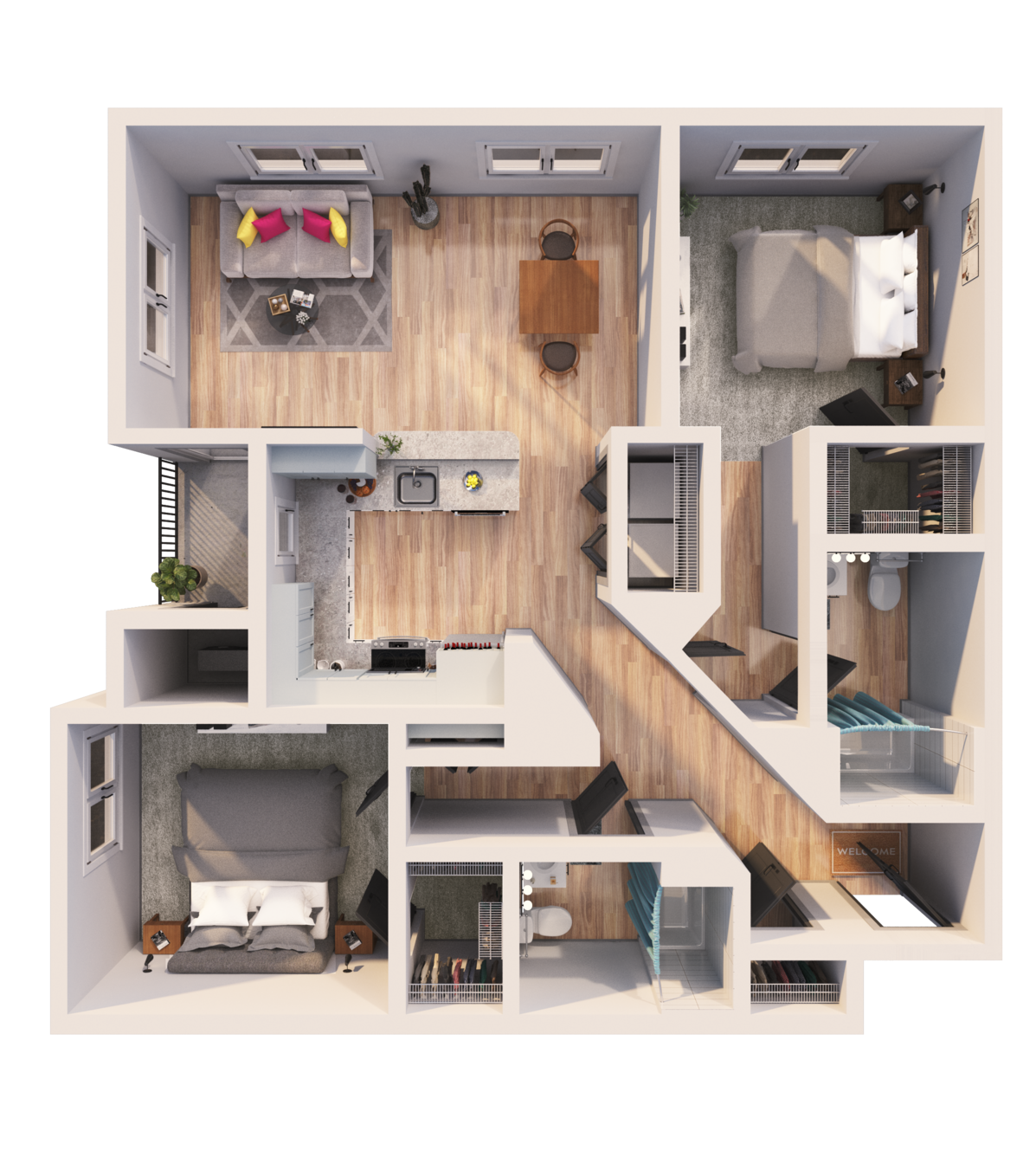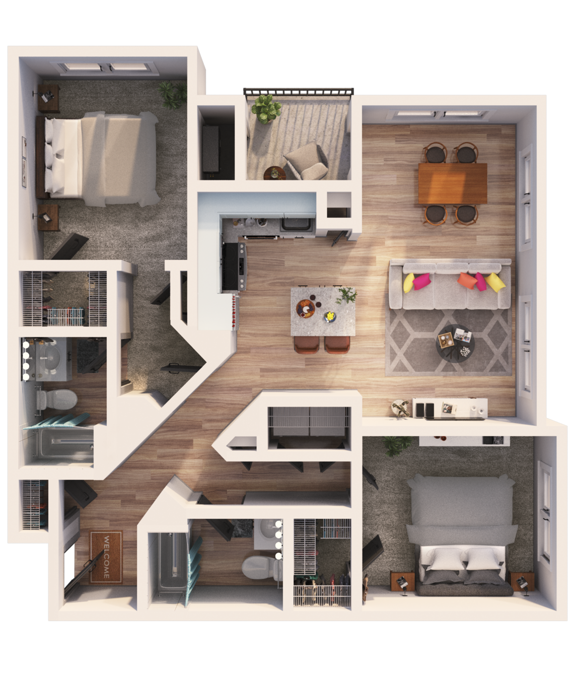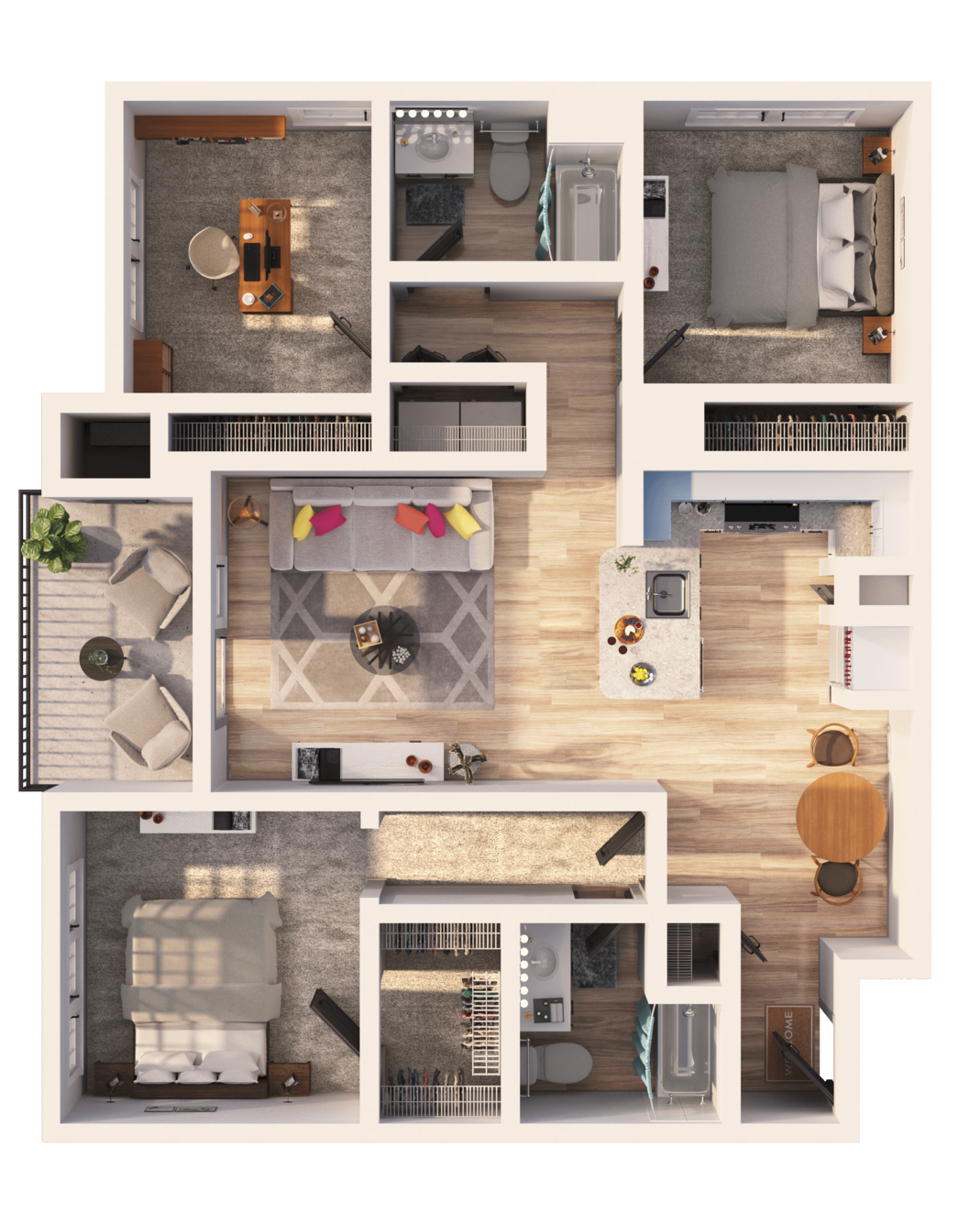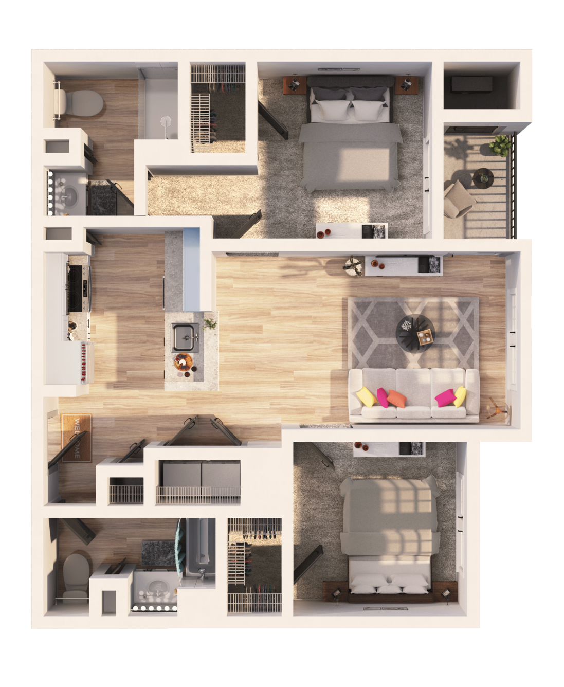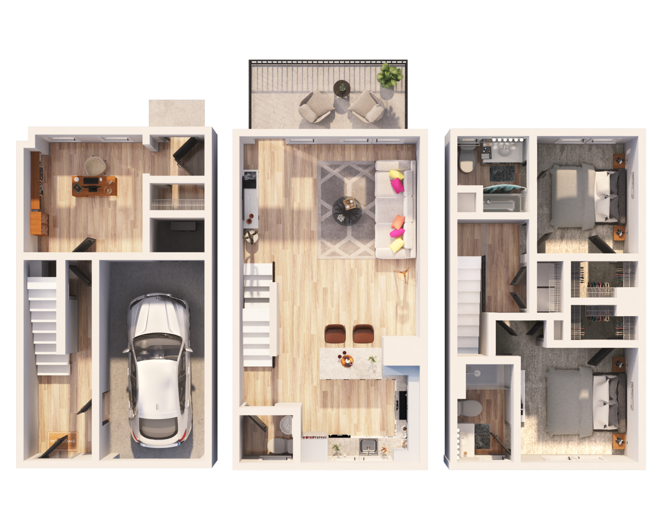 In each home, a gourmet kitchen with granite countertops and energy star appliances provides everything you need to perfect your culinary skills, while a private patio or balcony allows you to take in stunning community views from the comfort of home. If you’re looking for additional space to spread out, you can select one of our townhouse-style layouts with attached garages.